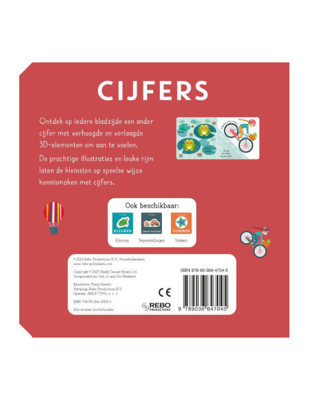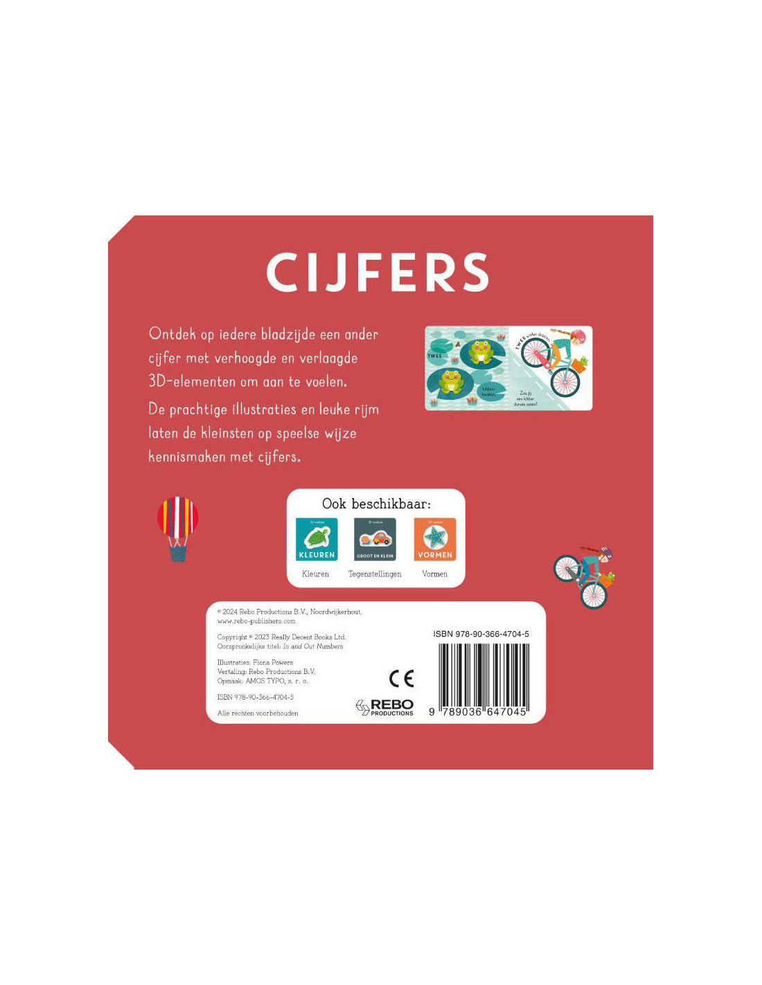 Kinderen leren hun eerste cijfers, kleuren, vormen en tegenstellingen kennen met verhoogde en verlaagde 3D-elementen om aan te voelen.