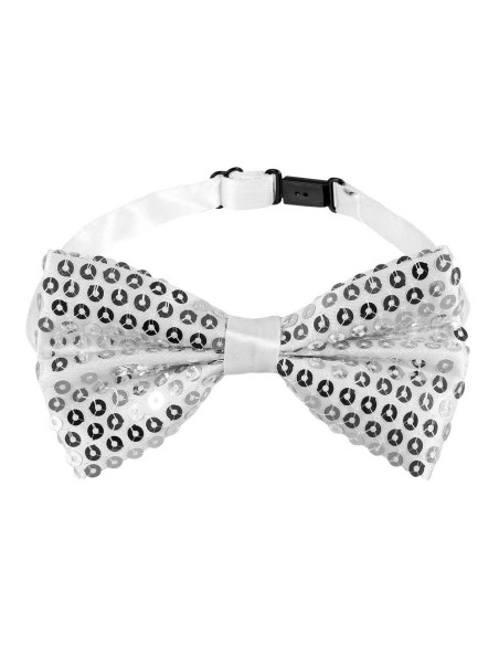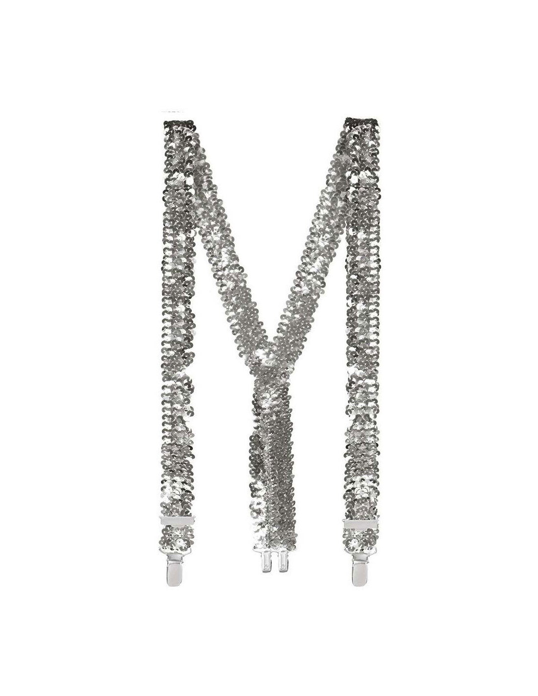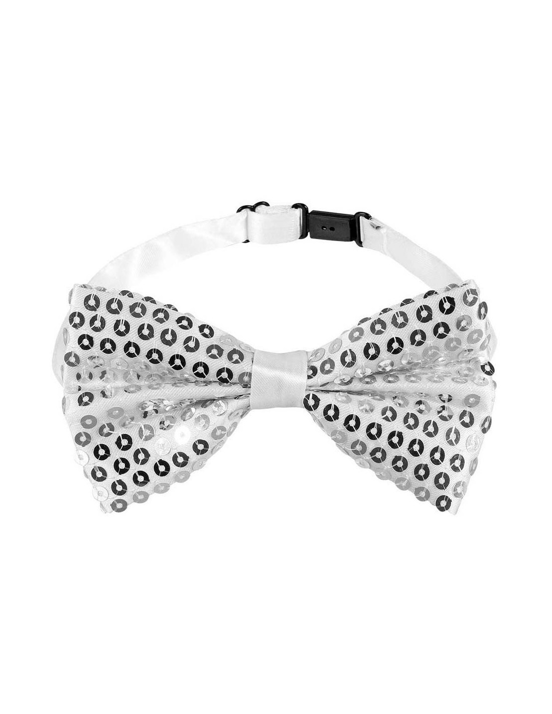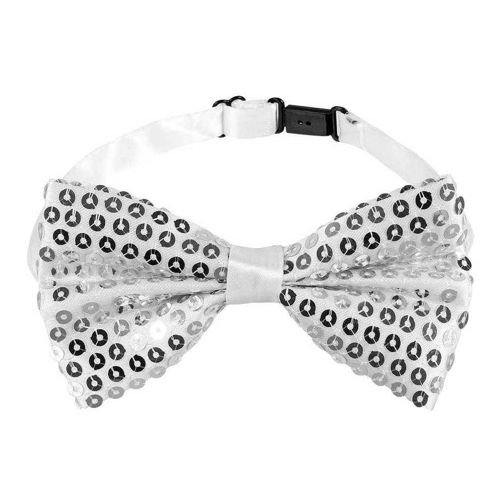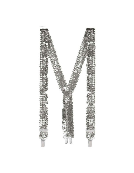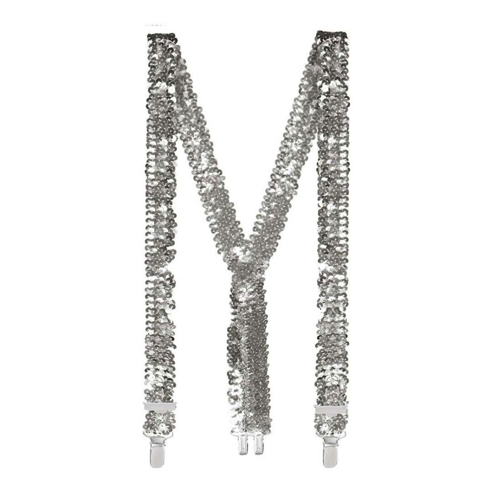 Zilveren accessoireset bestaande uit partybril, vlinderstrik en bretels. Gemaakt van diverse materialen. Geschikt vanaf 14 jaar.