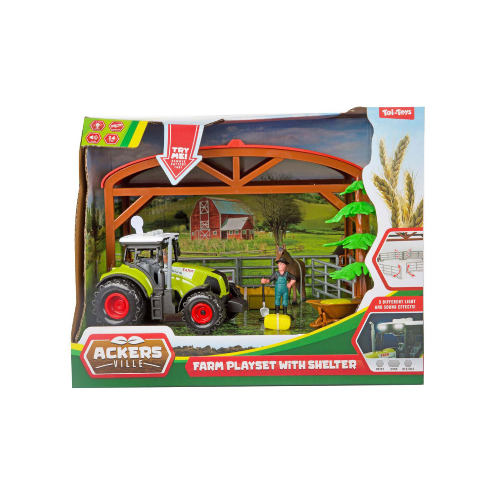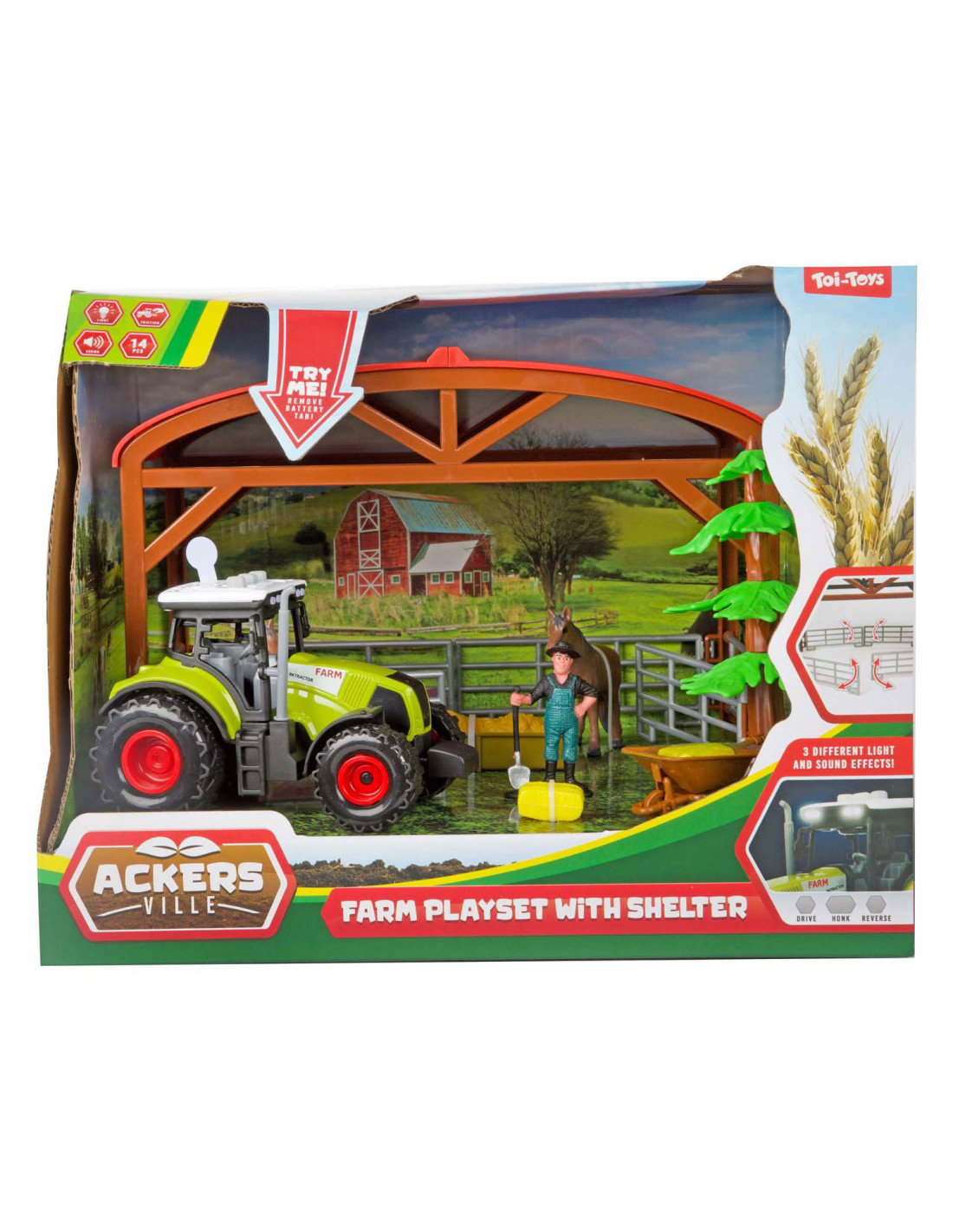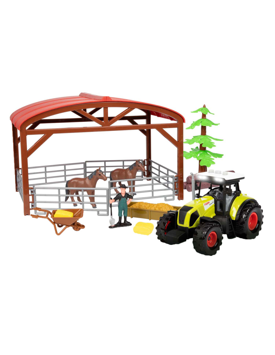 ACKERS VILLE Speelset Paardenstal, 14dlg. Inclusief 2 paarden, een boer, een tractor met licht en geluid, hekjes en diverse accessoires.