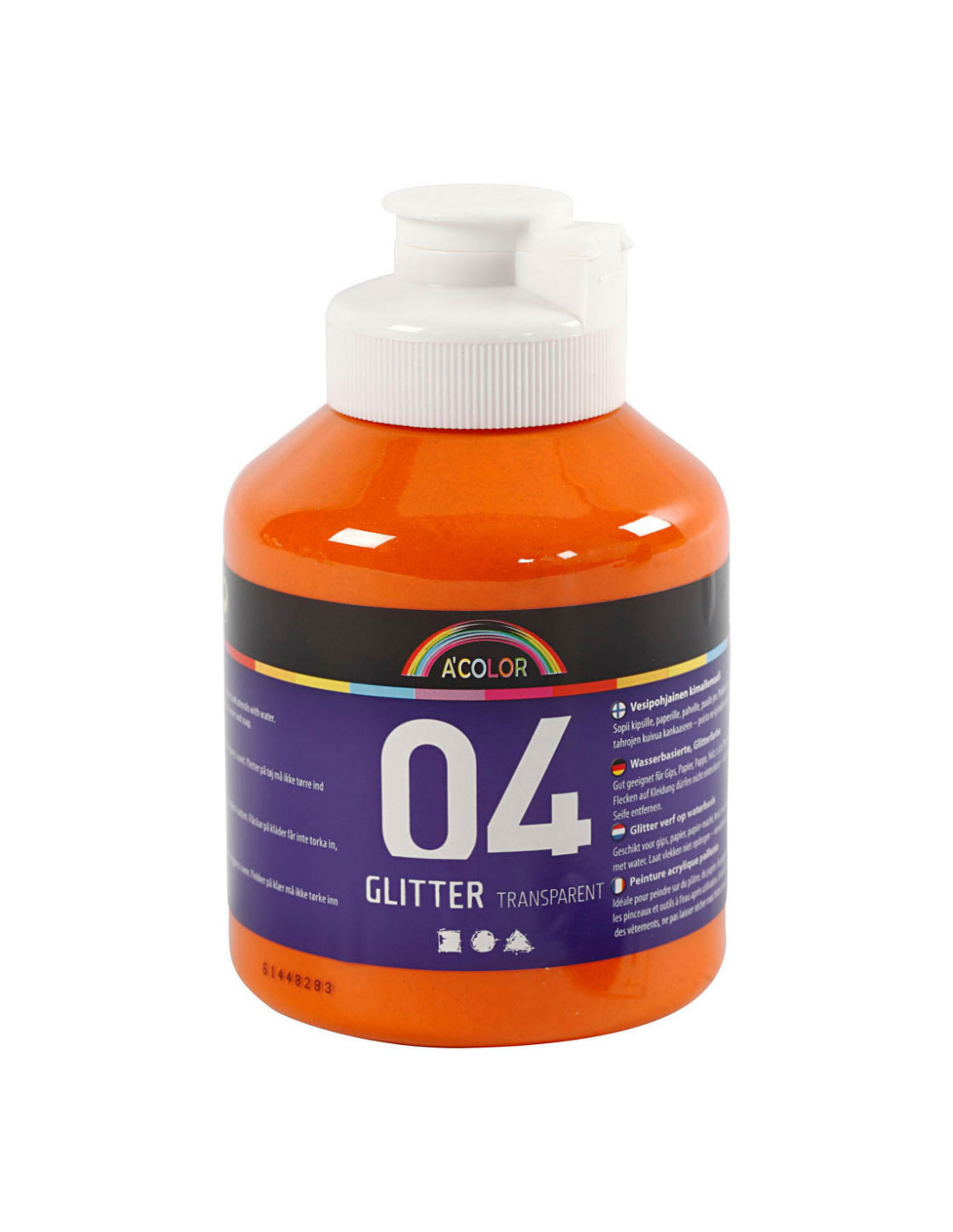 Uitstekende kwaliteit acrylverf op waterbasis. Doorschijnende kleuren met glittereffect. Geschikt als verf en als glittereffect op papier-maché, papier, gips en andere lichte vormen. A-Color kan veilig gebruikt worden door kinderen en volwassenen. Maak penselen na gebruik schoon met handwarm water