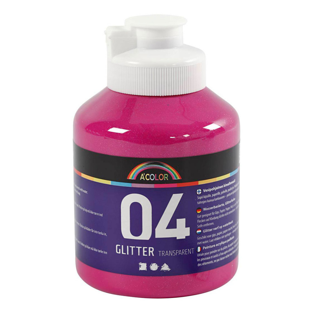 Uitstekende kwaliteit acrylverf op waterbasis. Doorschijnende kleuren met glittereffect. Geschikt als verf en als glittereffect op papier-maché, papier, gips en andere lichte vormen. A-Color kan veilig gebruikt worden door kinderen en volwassenen. Maak penselen na gebruik schoon met handwarm water