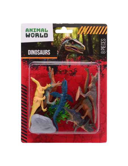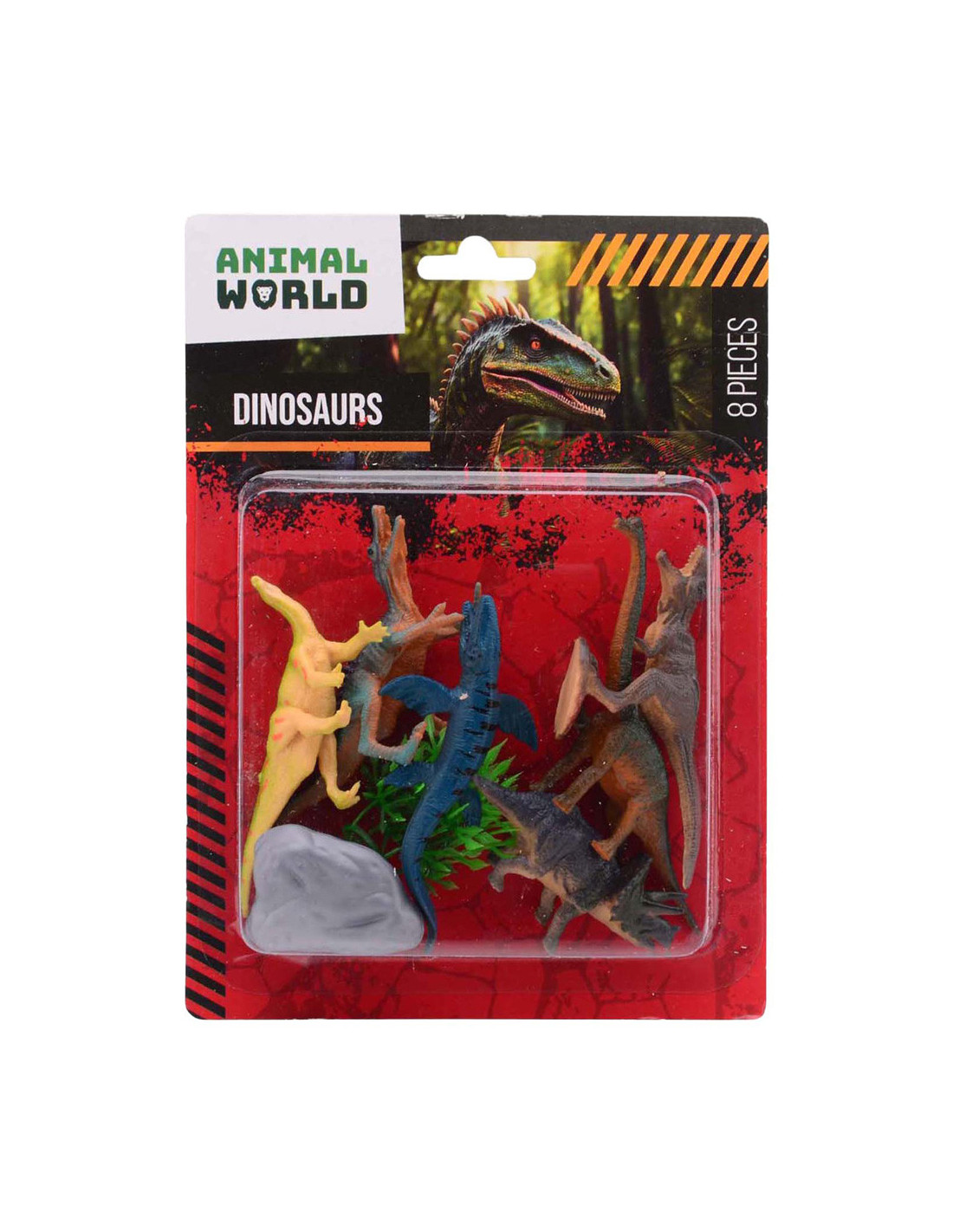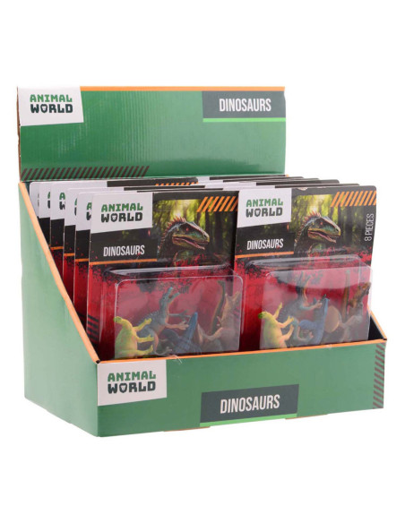 Animal World - Dino speelset 8-delig op kaart, in display. Geschikt voor kinderen vanaf 3 jaar.