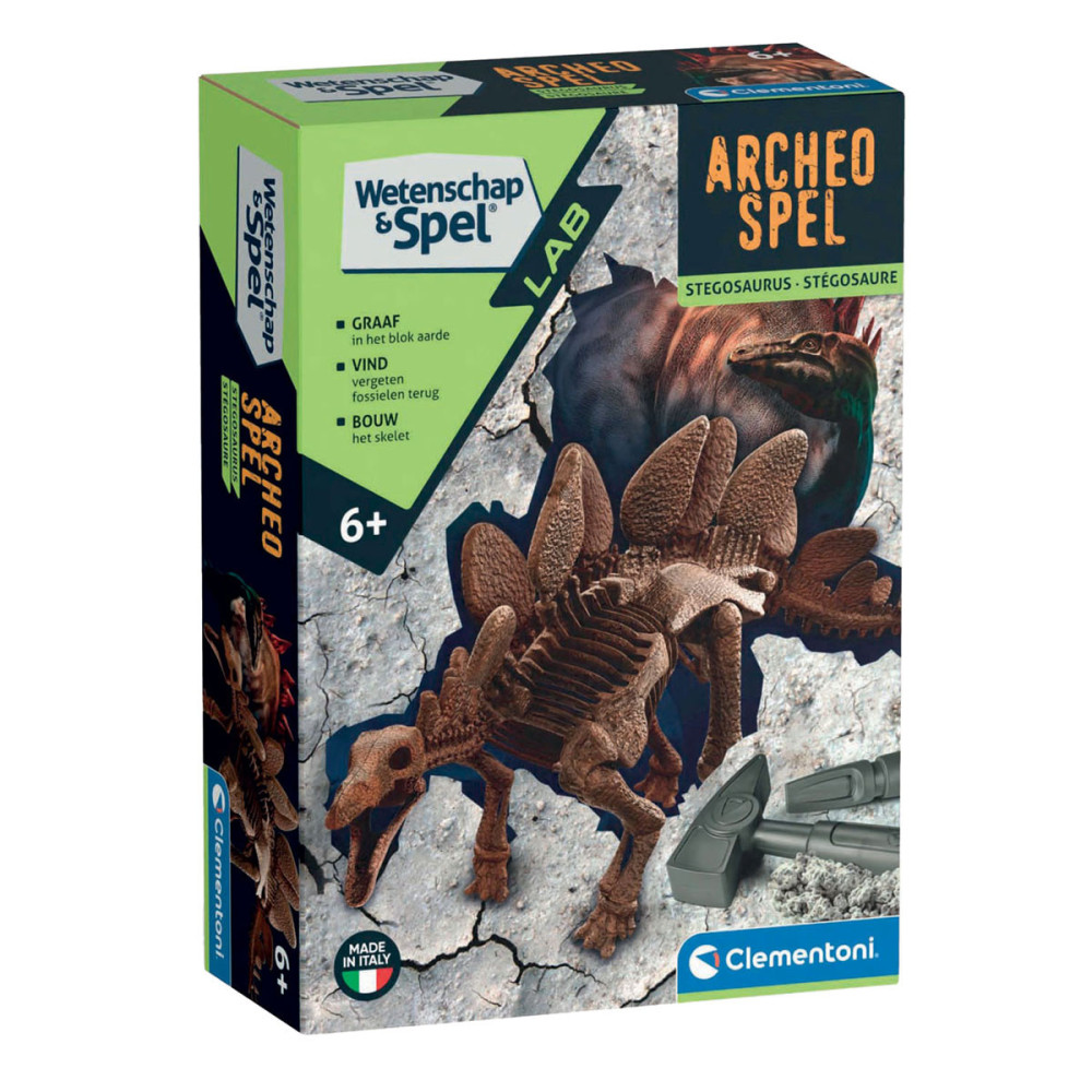 Graaf in de steen en ontdek het skelet van een legendarische Stegosaurus! Wek het verleden tot leven met augmented reality! Scan de kaarten van de set met je tablet of smartphone en de gratis app, om dit legendarische schepsel weer tot leven te brengen. Amuseer je door foto's te maken en te personaliseren, video's op te nemen en te delen! De verpakking bevat een hamer en een beitel om een echte paleontoloog te worden. Made in Italy. Ideaal voor kinderen van 6 jaar en ouder.