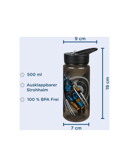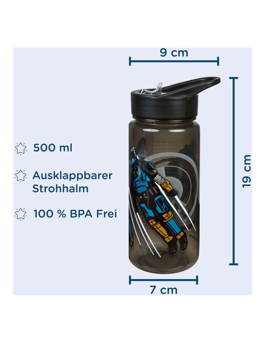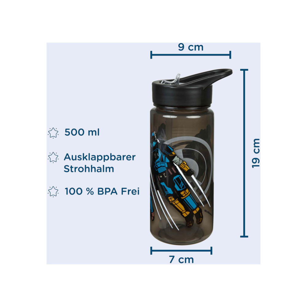 Areo Drinkfles Star Wars Mandolorian, 500ml. Gemaakt van kunststof en met geïntegreerd drinkrietje.