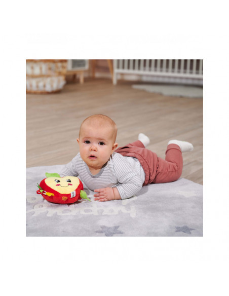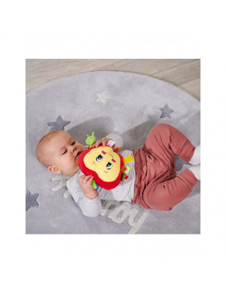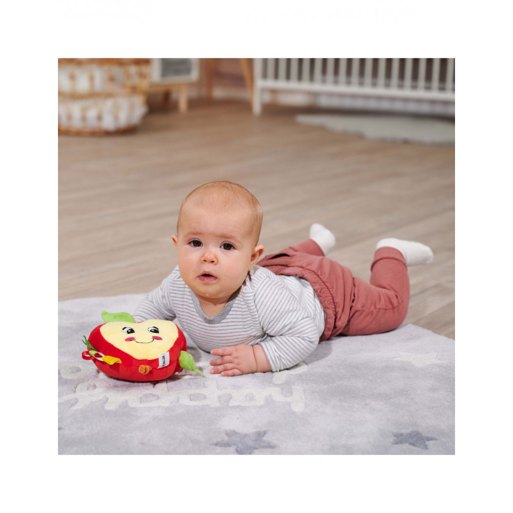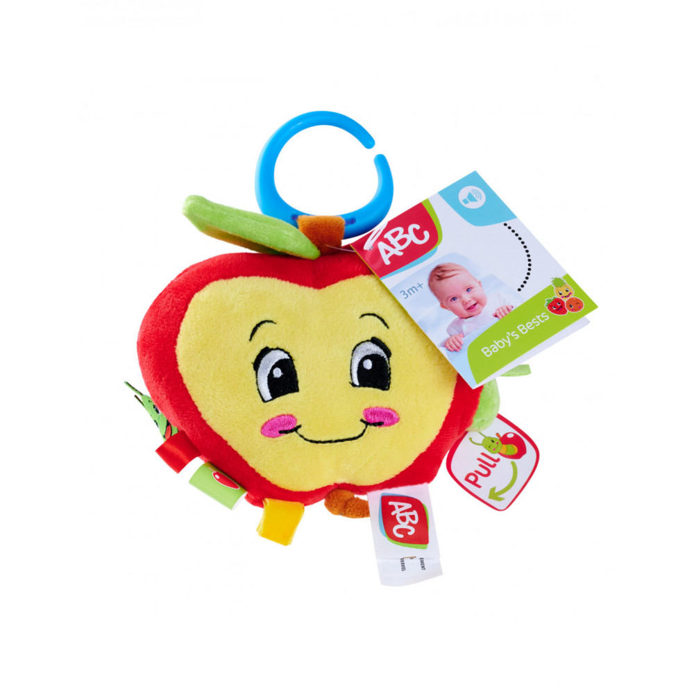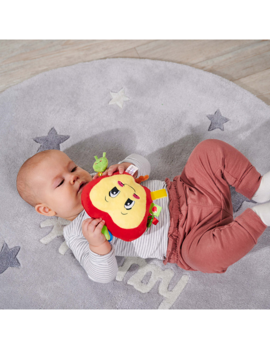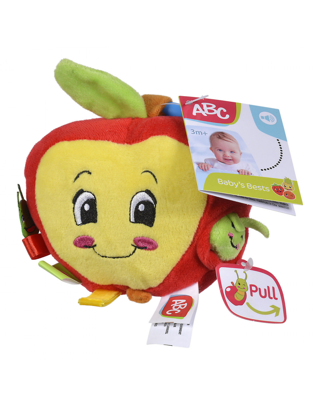 Knuffel appel met rups met pullback functie. Aan de appel zit een grote haak om het speeltje ergens aan vast te maken, bijvoorbeeld een kinderwagen. Geschikt voor baby's vanaf 3 maanden.