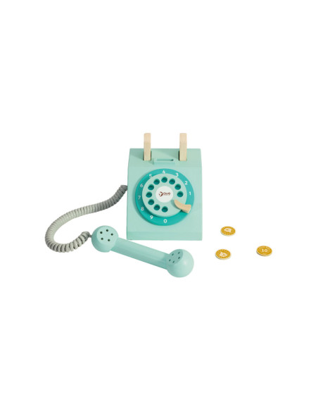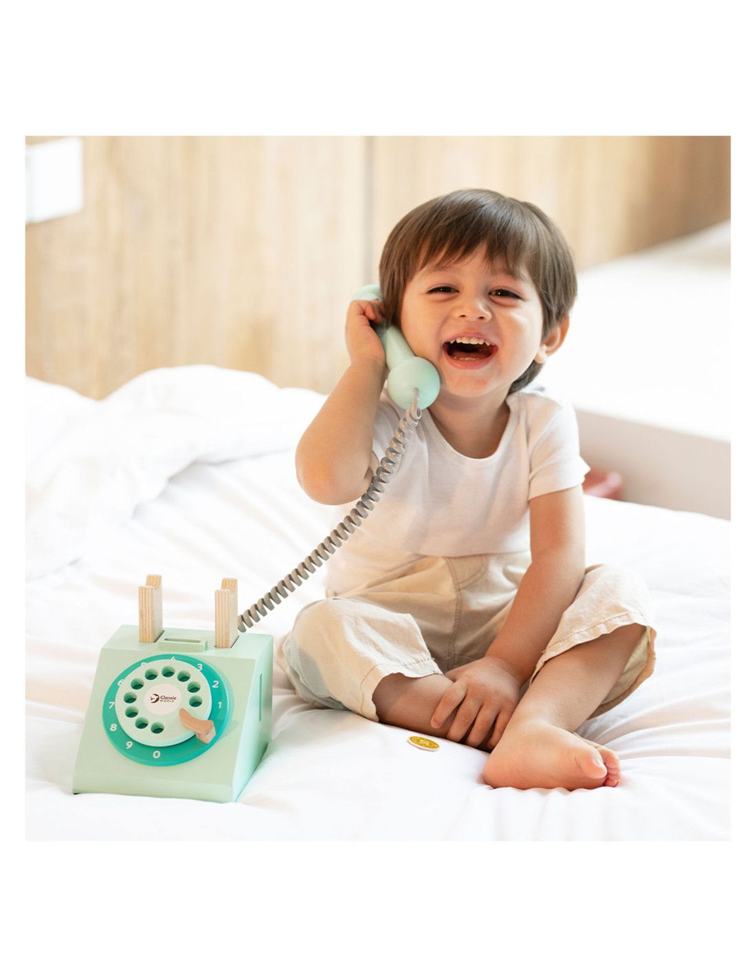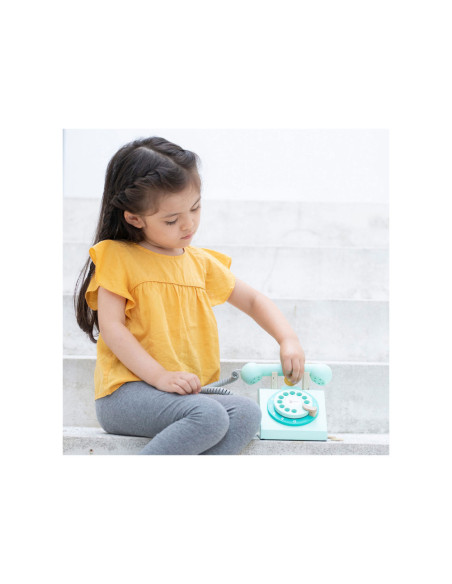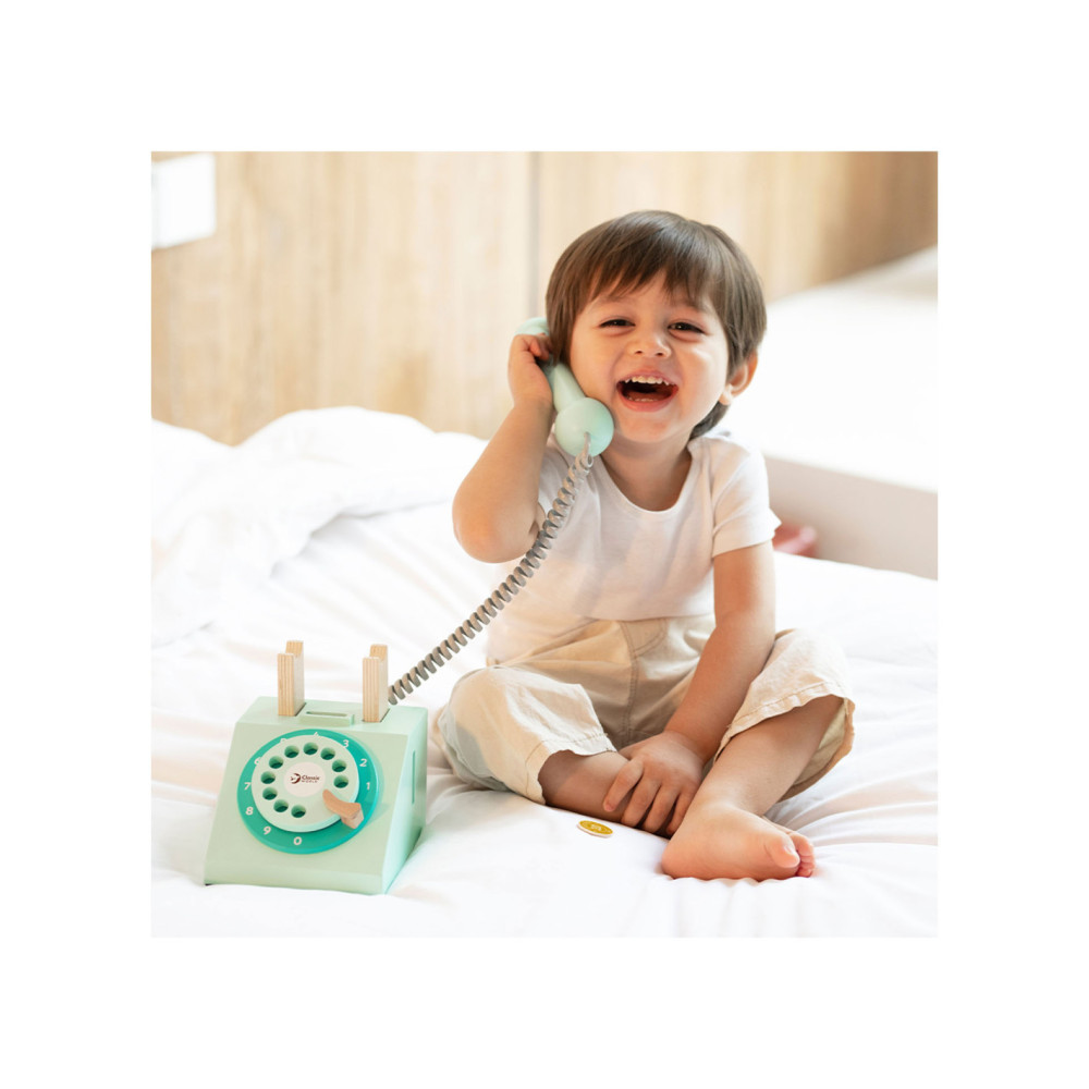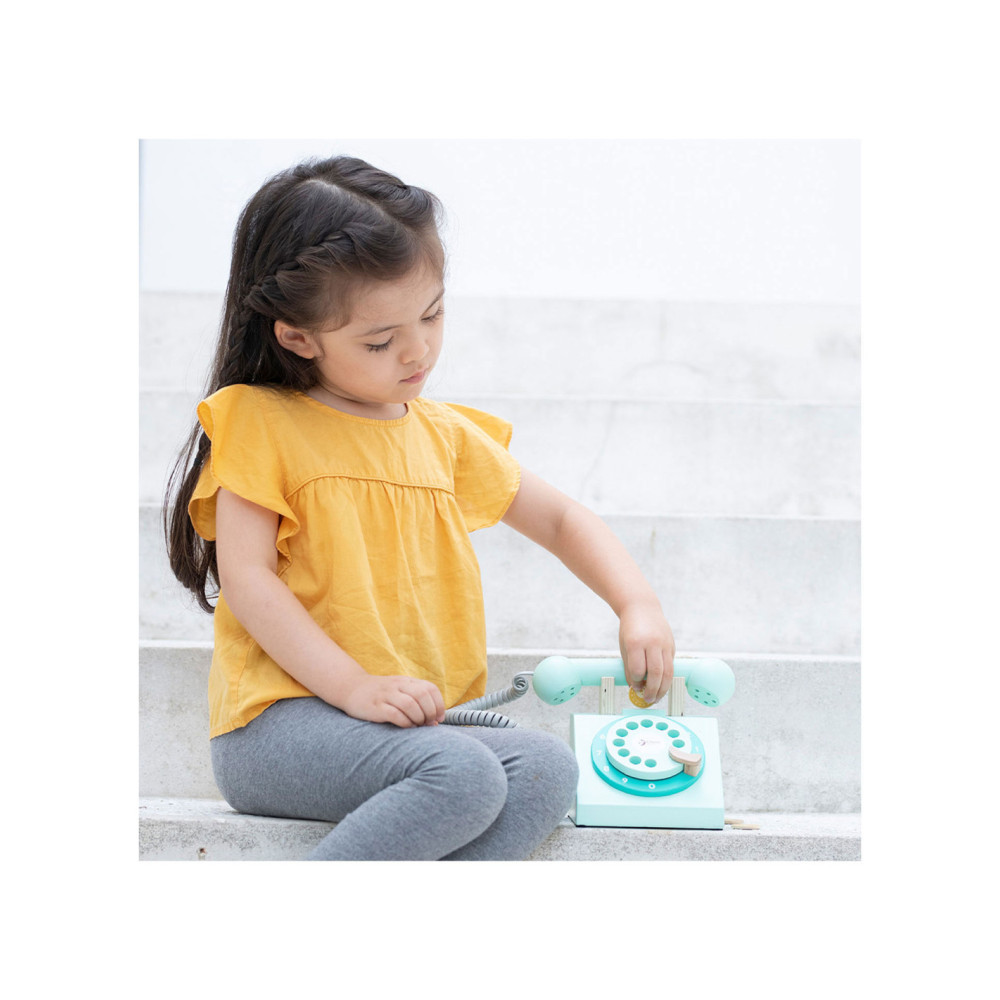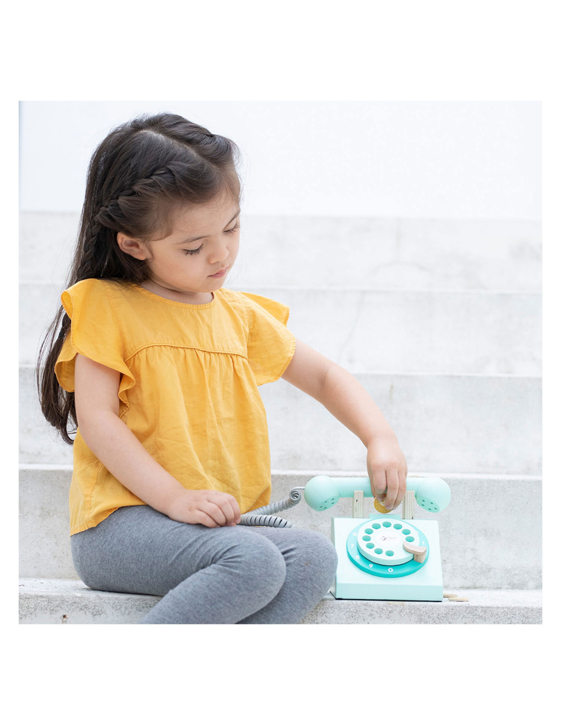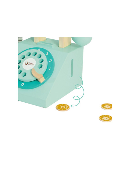 Houten speelgoedtelefoon met uniek retro design! Deze turquoise speelgoedtelefoon van Classic World heeft een echte draaischijf en hoorn. Gemaakt van duurzaam hout en bewerkt met kindveilige verf. Geschikt voor kinderen vanaf 3 jaar.