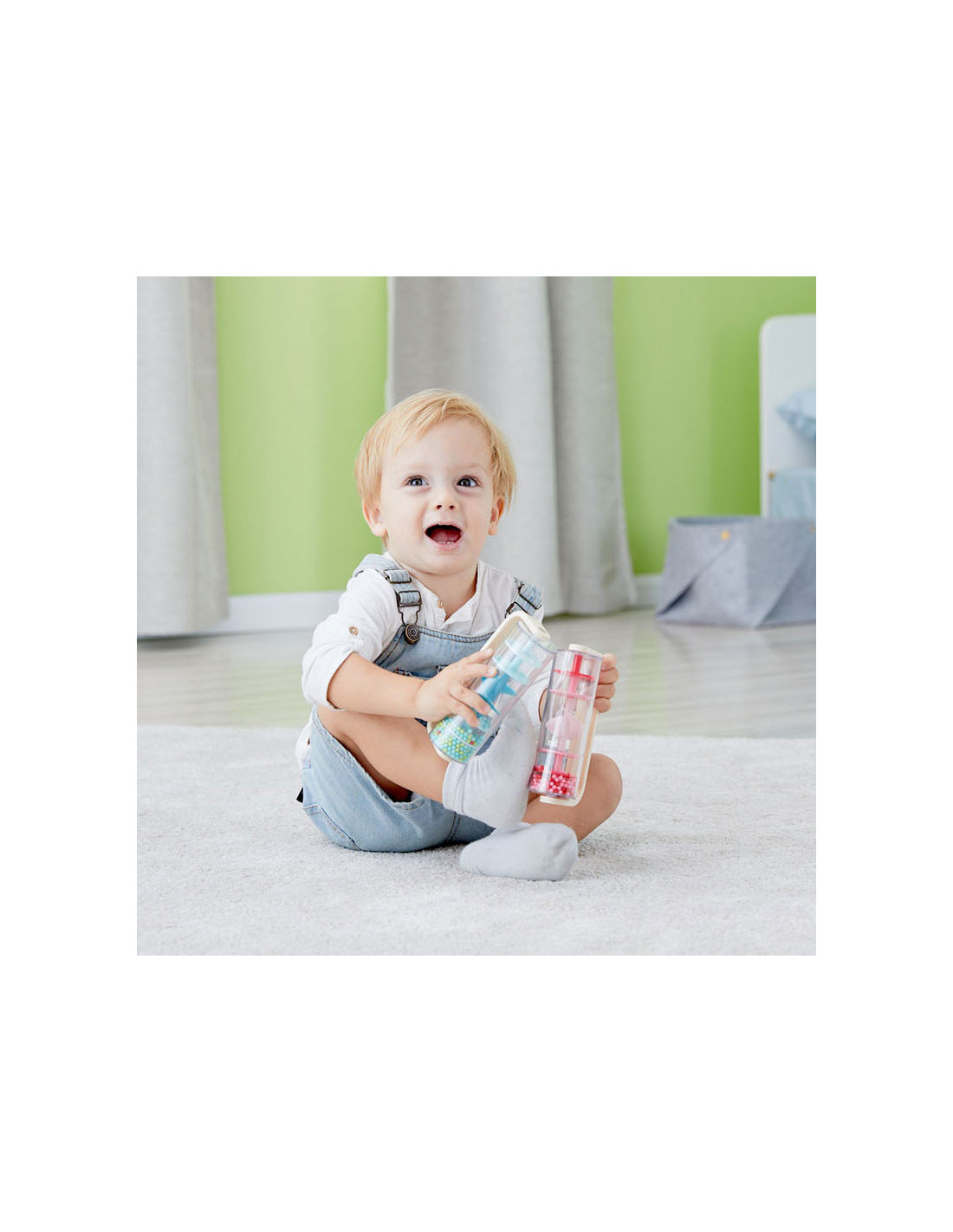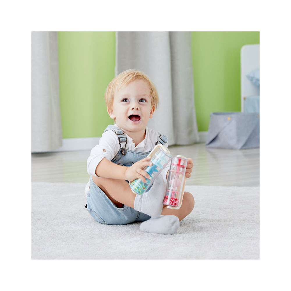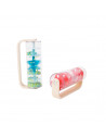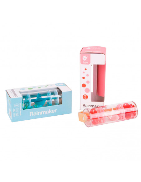 Als je het draait aan deze regenmaker, vallen de balletjes door het instrument, wat een geluid van regendruppels veroorzaakt.