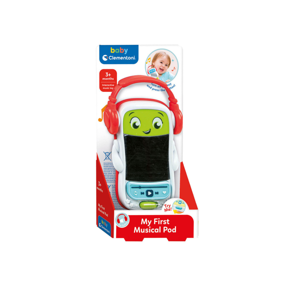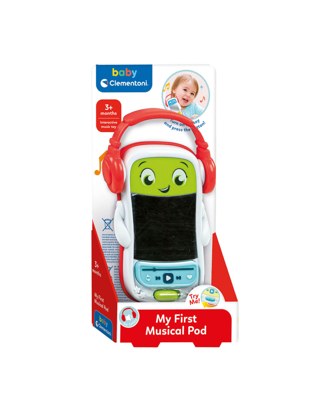 Een muziekpod met lichtjes en een spiegeltje om het kind te stimuleren dankzij een imitatief spel. Het spel stimuleert met muziek en geluiden de auditieve waarneming van het kind, dat zal genieten van het luisteren naar vier verschillende muziekgenres. Met Mijn eerste muziekpod kan het kind oefenen en met veel plezier verschillende voorwerpen aanraken en vasthouden. Met dit spel imiteert het kind het gebruik van de muziekspeler van mama en papa. Ontdek al het imitatiespeelgoed van de Baby Clementoni lijn.