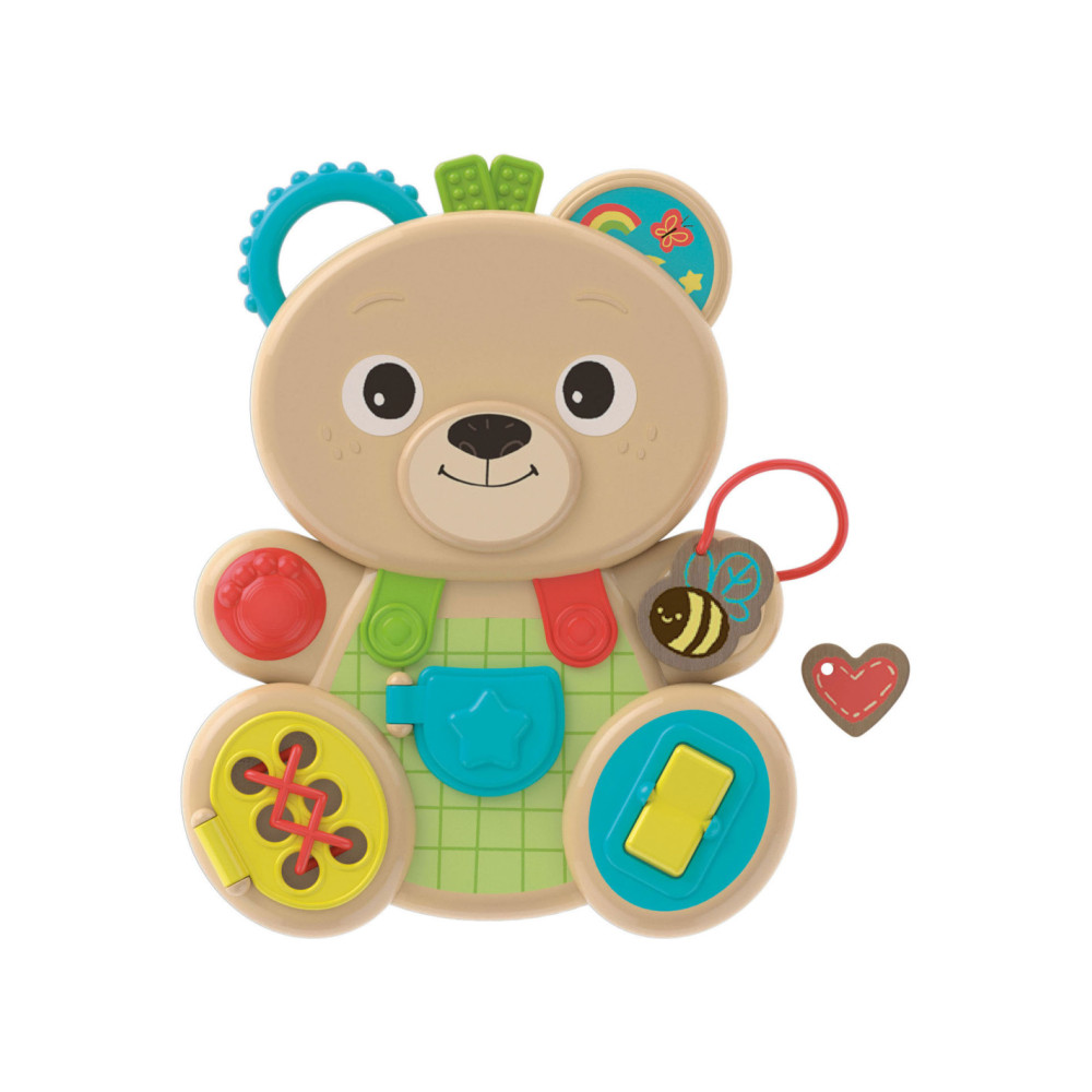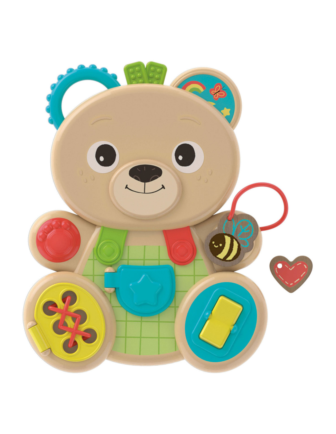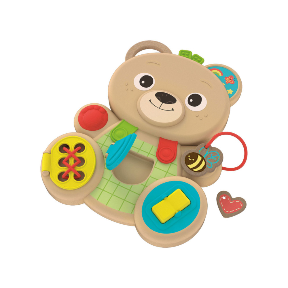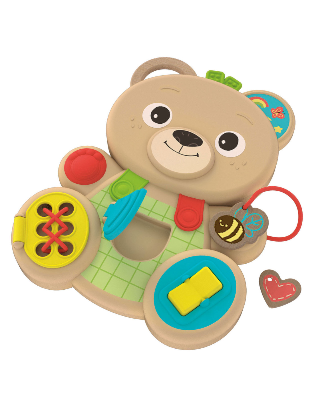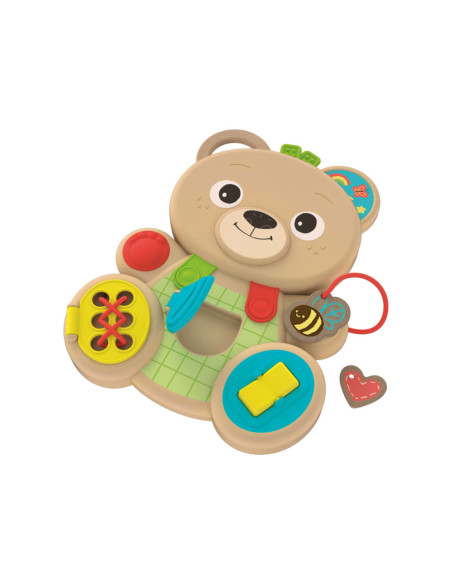 Een grappig beertje met elementen van verschillende materialen en heel veel activiteiten om te ontdekken. Het speelgoed is gebaseerd op de Montessori-pedagogie met een schat aan mechanismen en activiteiten om de handvaardigheid van het kind te trainen en zijn concentratievermogen te oefenen. Dankzij de aanwezigheid van verschillende materialen stimuleert het beertje de zintuigen, waardoor het kind leert alledaagse voorwerpen vast te houden. Geschikt vanaf 12 maanden.