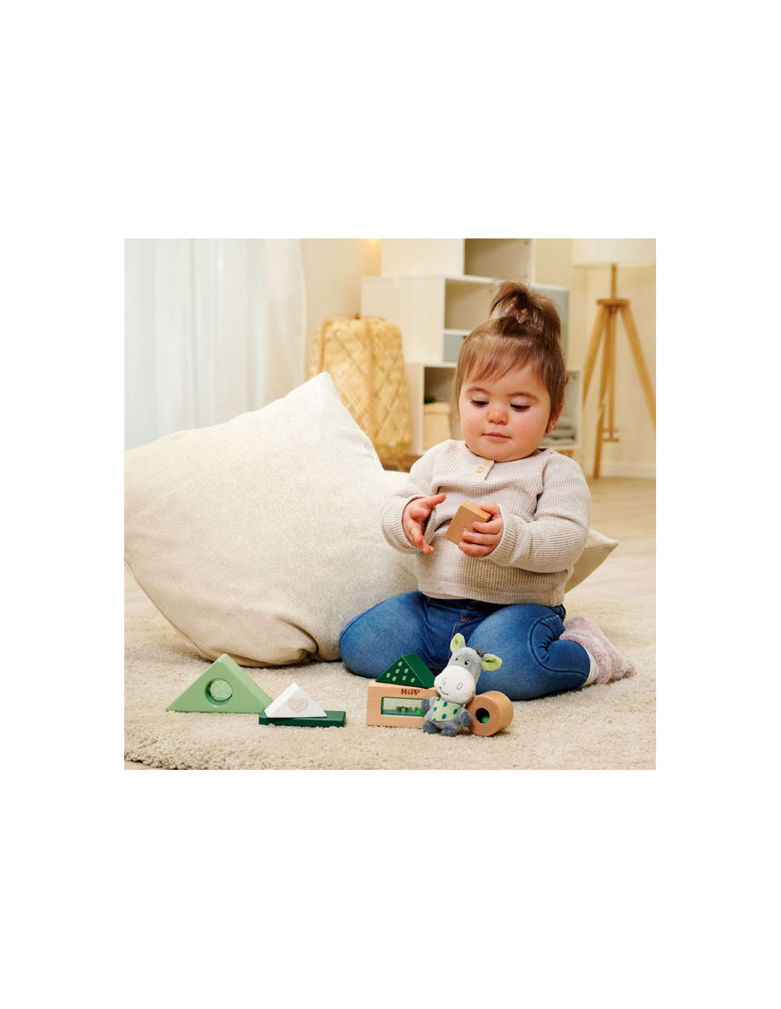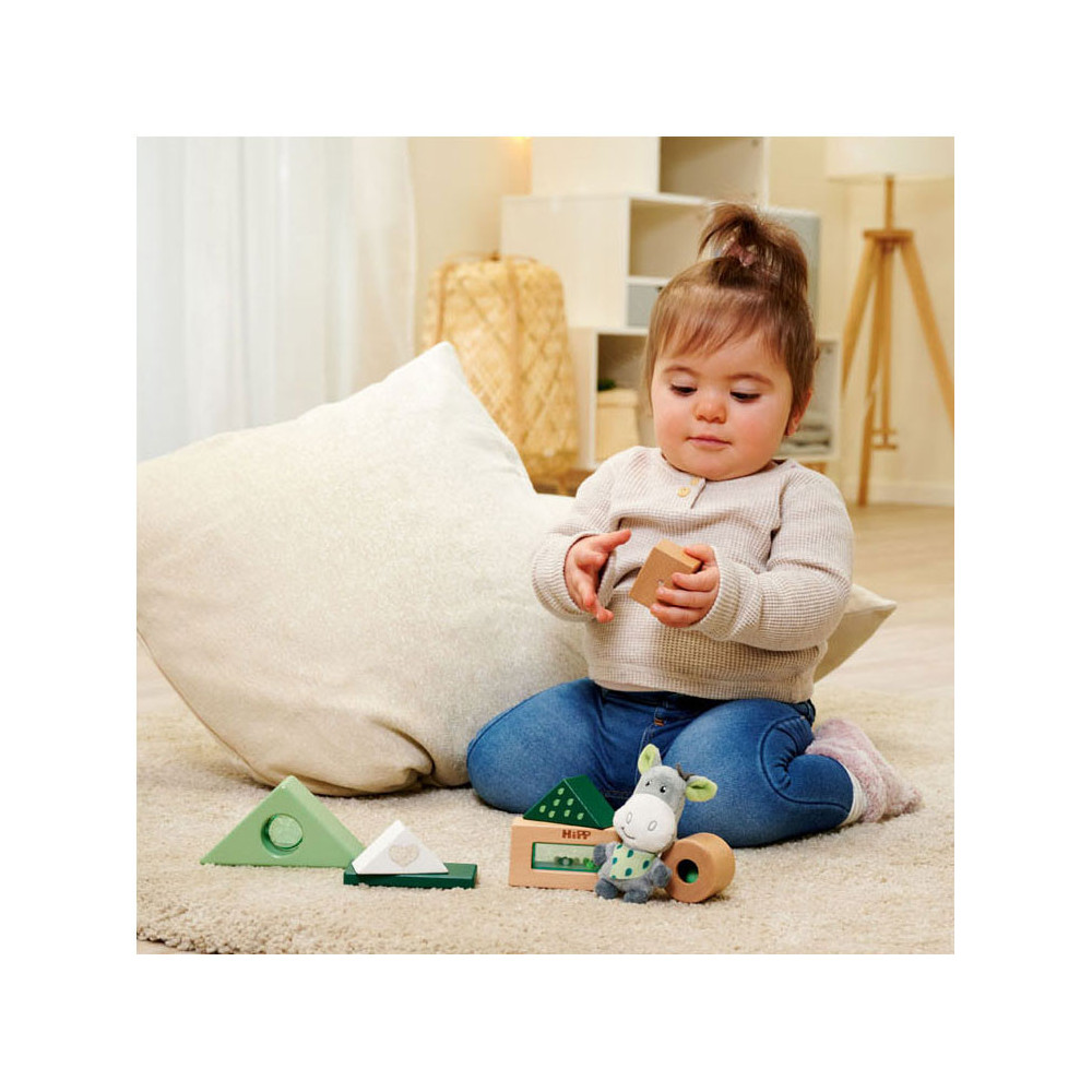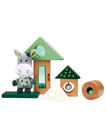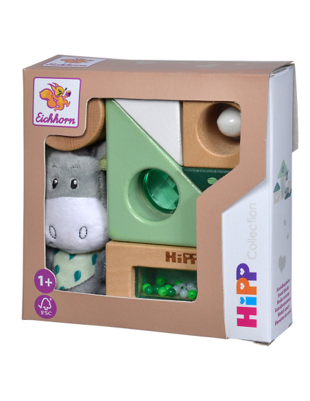 Eichhorn Baby HiPP Collection geluidsbouwstenen: De 7 geluidsbouwstenen en de pluchen ezel uit de Eichhorn Baby HiPP Collection in verschillende kleuren en vormen zijn het perfecte speelgoed voor alle kleine ontdekkingsreizigers. De stenen zijn gemaakt van hoogwaardig beukenhout en zijn elk voorzien van kraaltjes, een belletje of andere sensorische ontdekkingen. Dit bevordert en traint specifiek het muzikaal gehoor, de motoriek en de oog-handcoördinatie van je kind. Gemaakt van 100% FSC®-hout uit duurzame bosbouw. Geschikt voor kinderen vanaf één jaar.