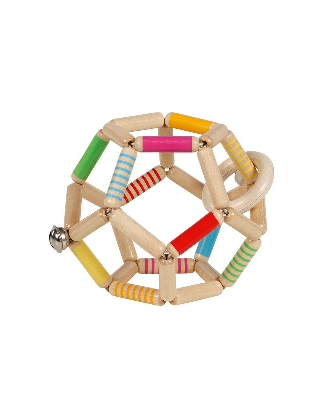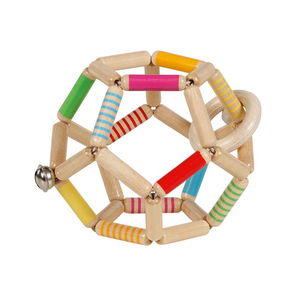Aangenaam om aan te raken, mee te spelen, de motoriek mee te trainen, mee te rammelen en als tastspeeltje- alles in deze elastische bal.