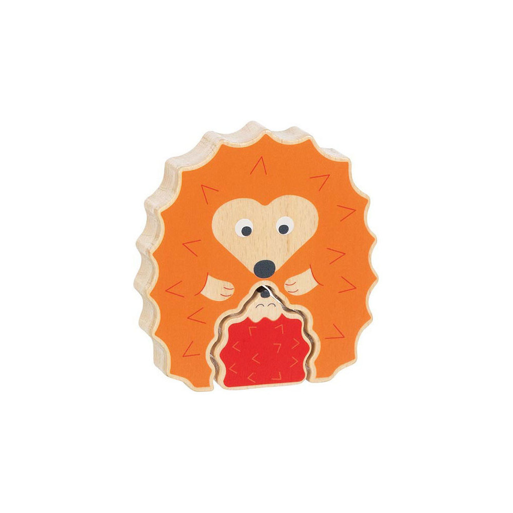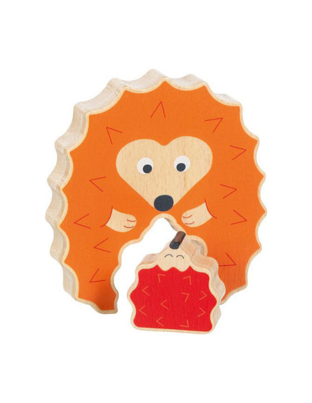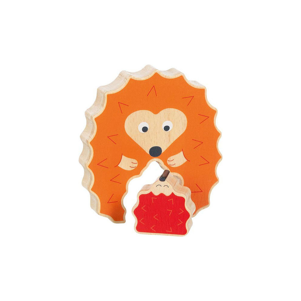 Lieve egel puzzel, een mama met baby. Plaats het baby egeltje op de juiste manier in de staande puzzel.