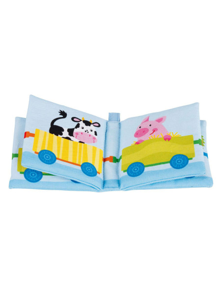 Knisperboekje van Goki met vrolijke illustraties van verschillende dieren in een trein.