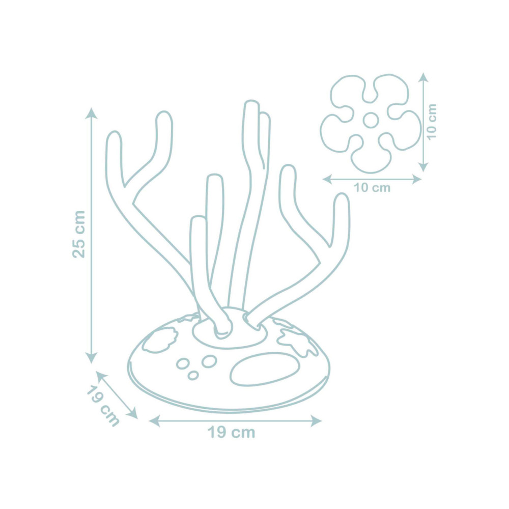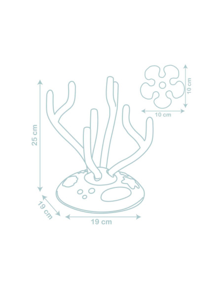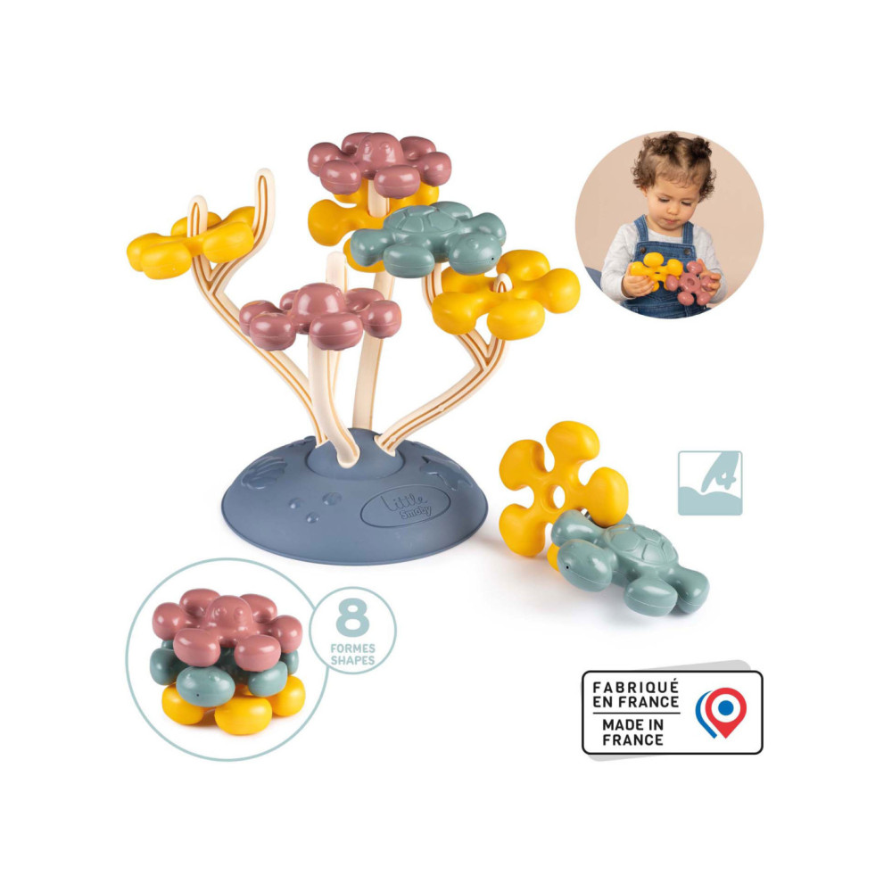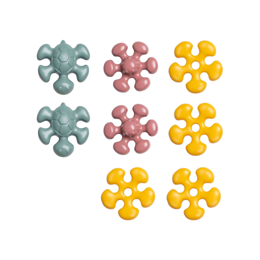 Constructiespel. Het product bevat 8 geblazen vormen: 2 schildpadden, 2 octopussen en 4 bloemen. Geschikt vanaf 12 maanden.