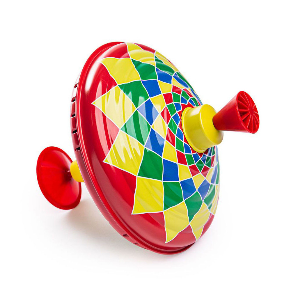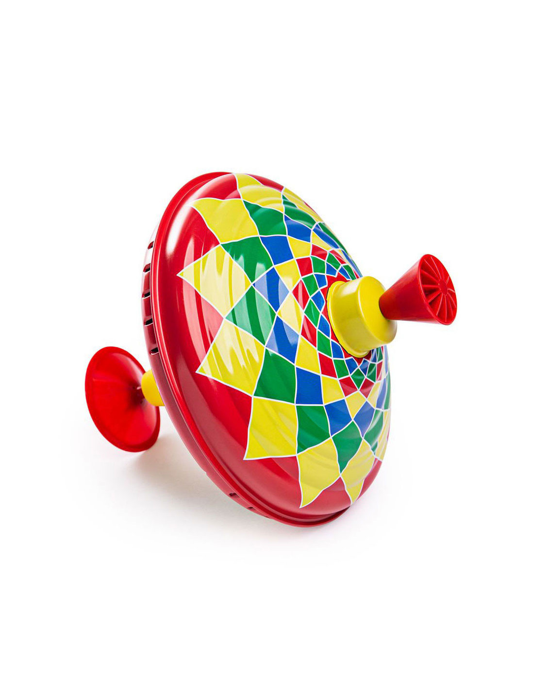 Met zijn felle kleuren en het klassieke geluid van de draaiend top, zal deze metalen Bromtol zeker een favoriet tijdens het spelen worden! Geïnspireerd door speelgoed uit het verleden met tollen, zal het klassieke ontwerp met primaire kleuren ongetwijfeld veel nostalgie oproepen. De tol is gemakkelijk te gebruiken: pomp eenvoudig het handvat op en neer en kijk en luister terwijl het zoemende geluid zich opbouwt en opbouwt!