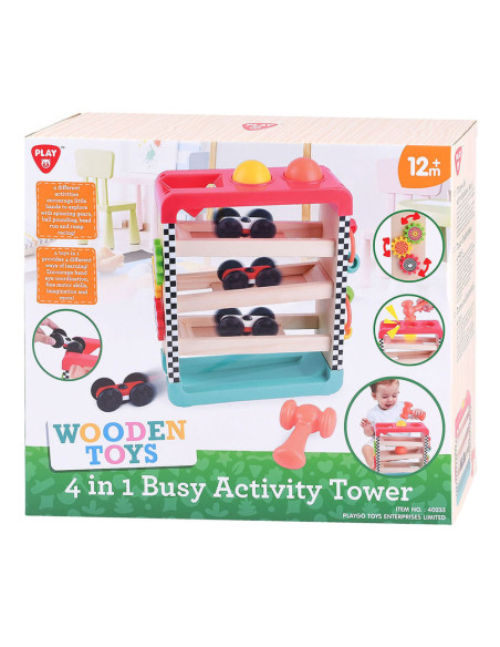 4 in 1 houten activiteitentoren voor kinderen vanaf 12 maanden.