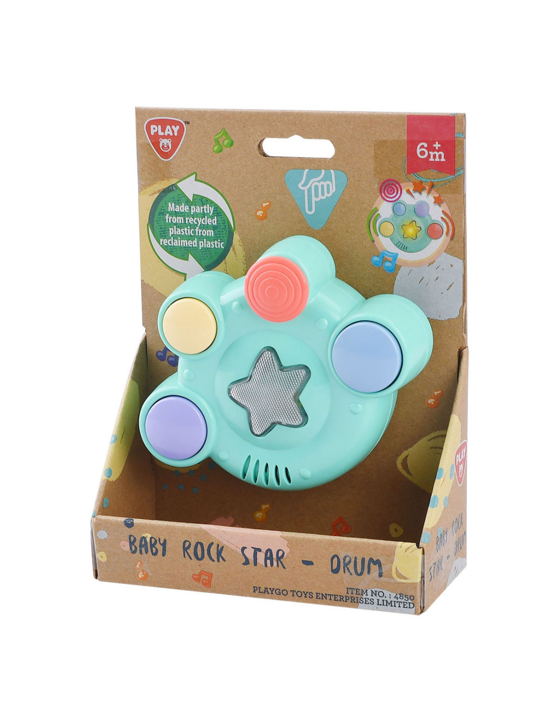 Kom in aanraking met licht en geluid met dit kleurrijke instrument in de vorm van een drum. Elk van de 4 knoppen heeft een ander deuntje zodra deze wordt ingedrukt. Daarnaast geeft de ster in het midden ook licht zodra een knop wordt ingedrukt. Dit instrument is 15 x 20 x 6 centimeter groot en geschikt voor kinderen vanaf 6 maanden.