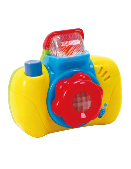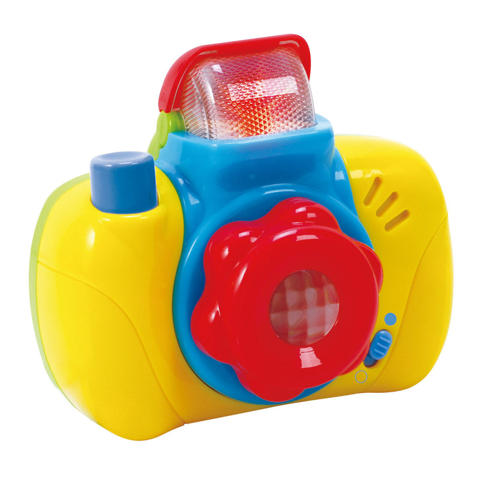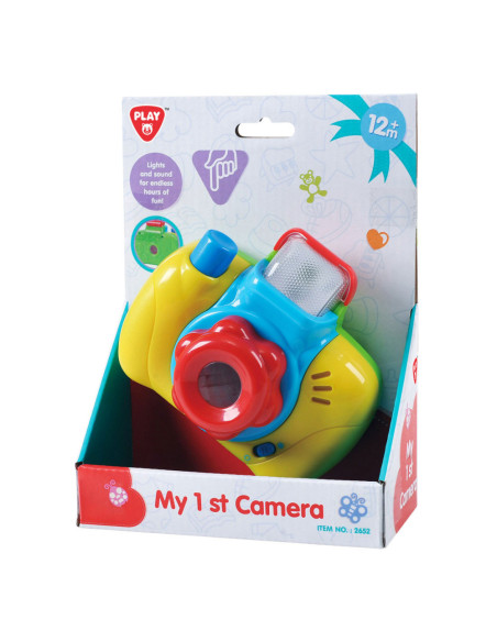 Maak de mooiste kiekjes met je eerste camera van Play. Neem een kijkje door het transparante raampje en stel de foto scherp door aan de lens te draaien. Met een druk op de knop gaat de flitser open en heb je de foto gemaakt! De speciale licht- en geluidseffecten maken het fotograferen net echt! De camera is gemaakt van stevig kunststof in vrolijke kleuren. Inclusief batterijen.