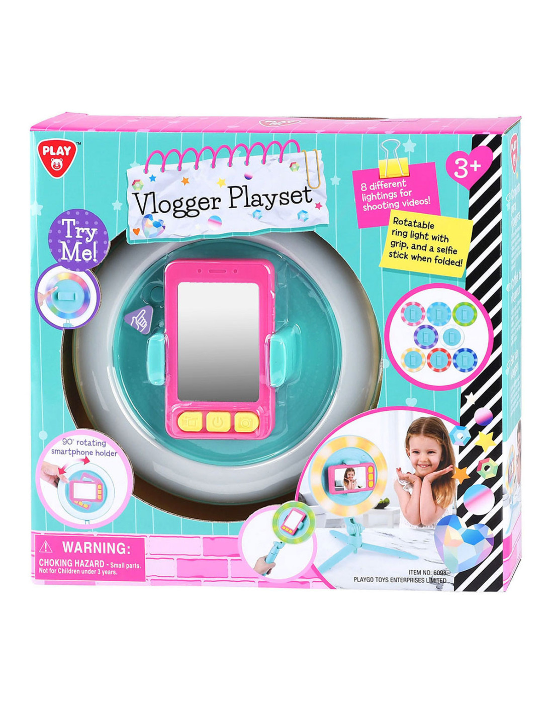 Vlogger speelset bestaande uit een statief en een speelgoedtelefoon en wordt geleverd met batterijen. Geschikt voor kinderen vanaf 3 jaar.
