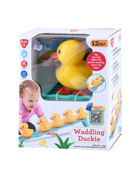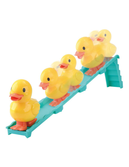 Wat een schattige eend is dit! Zodra je hem bovenaan de glijbaan zet begint die waggelend naar beneden te lopen. De glijbaan bestaat uit 5 blauwe onderdelen die je gemakkelijk aan elkaar zet. Geschikt voor kinderen vanaf 12 maanden.