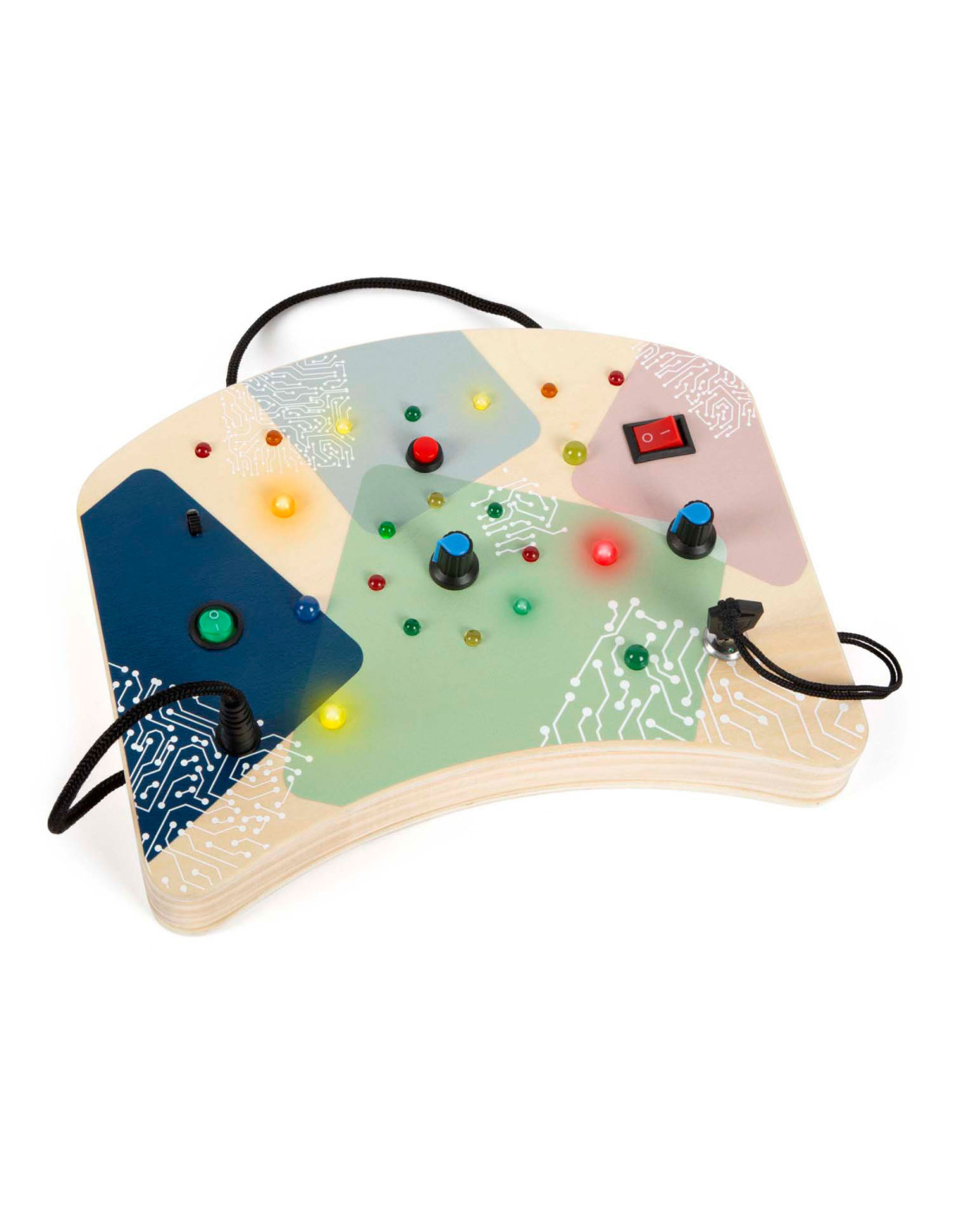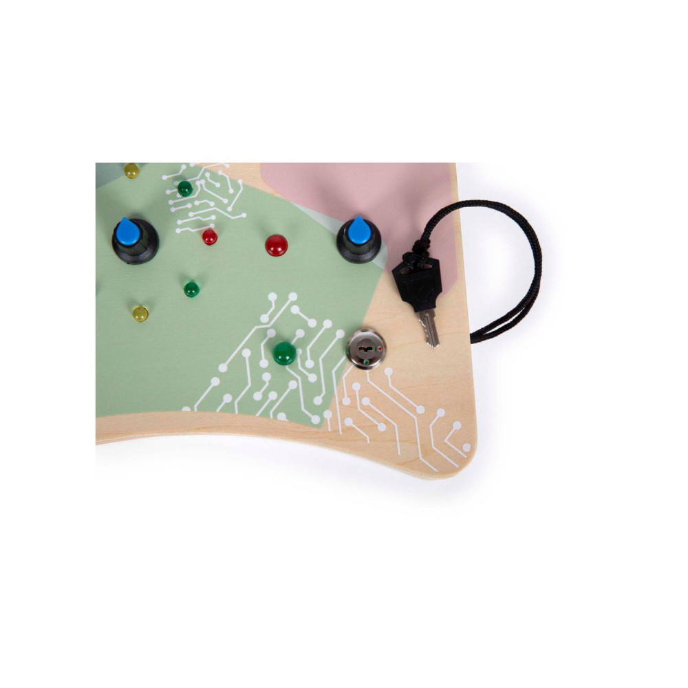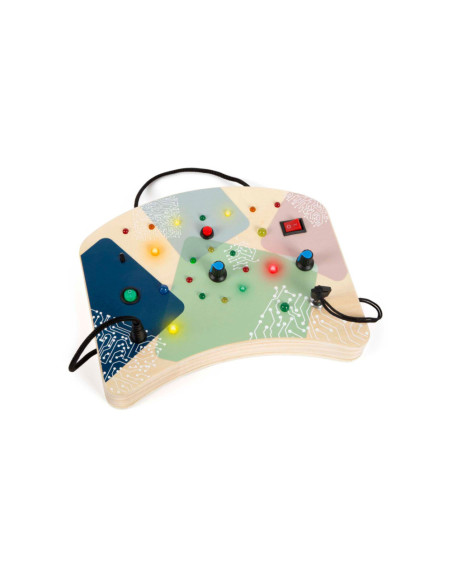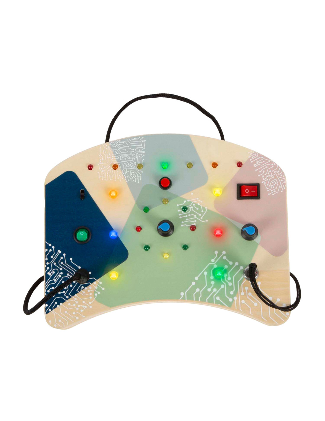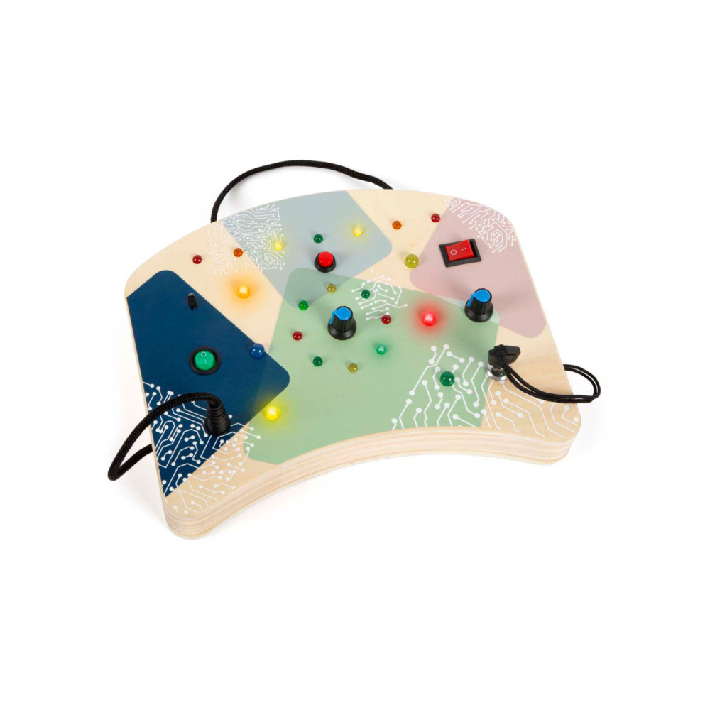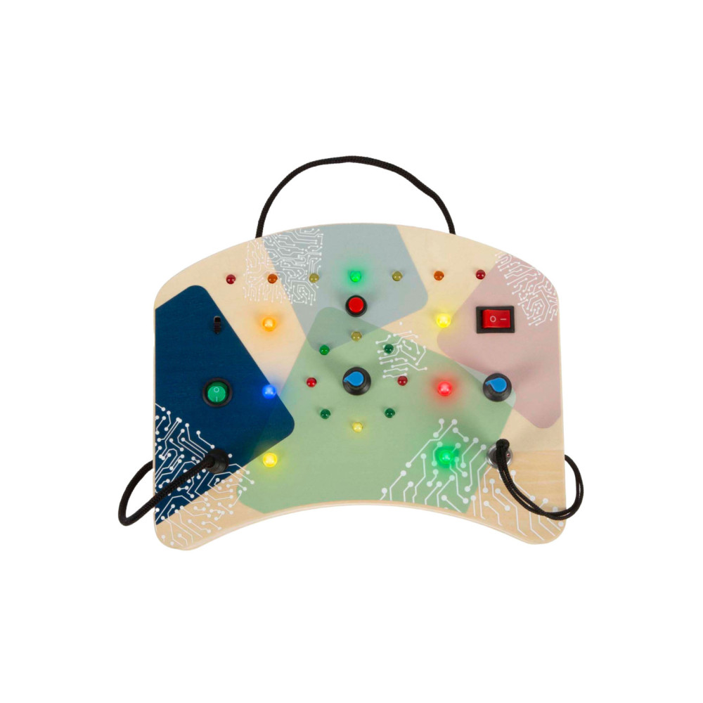 LED activiteitenboard met knoppen, schakelaars en lichtjes. Geschikt voor kinderen vanaf 24 maanden. Het formaat van het LED board is 22,5 x 15,5 x 5 cm Werkt op 3 AAA batterijen (niet inbegrepen).