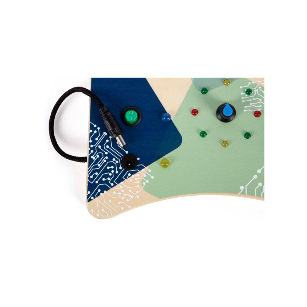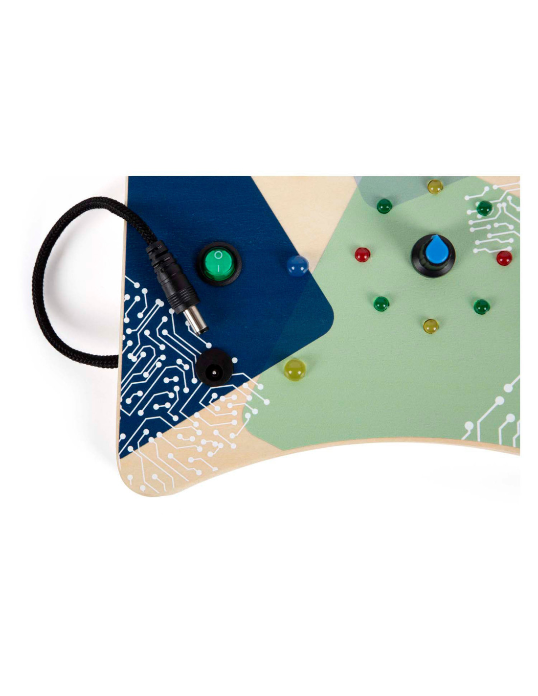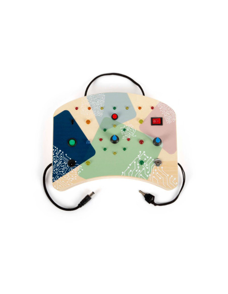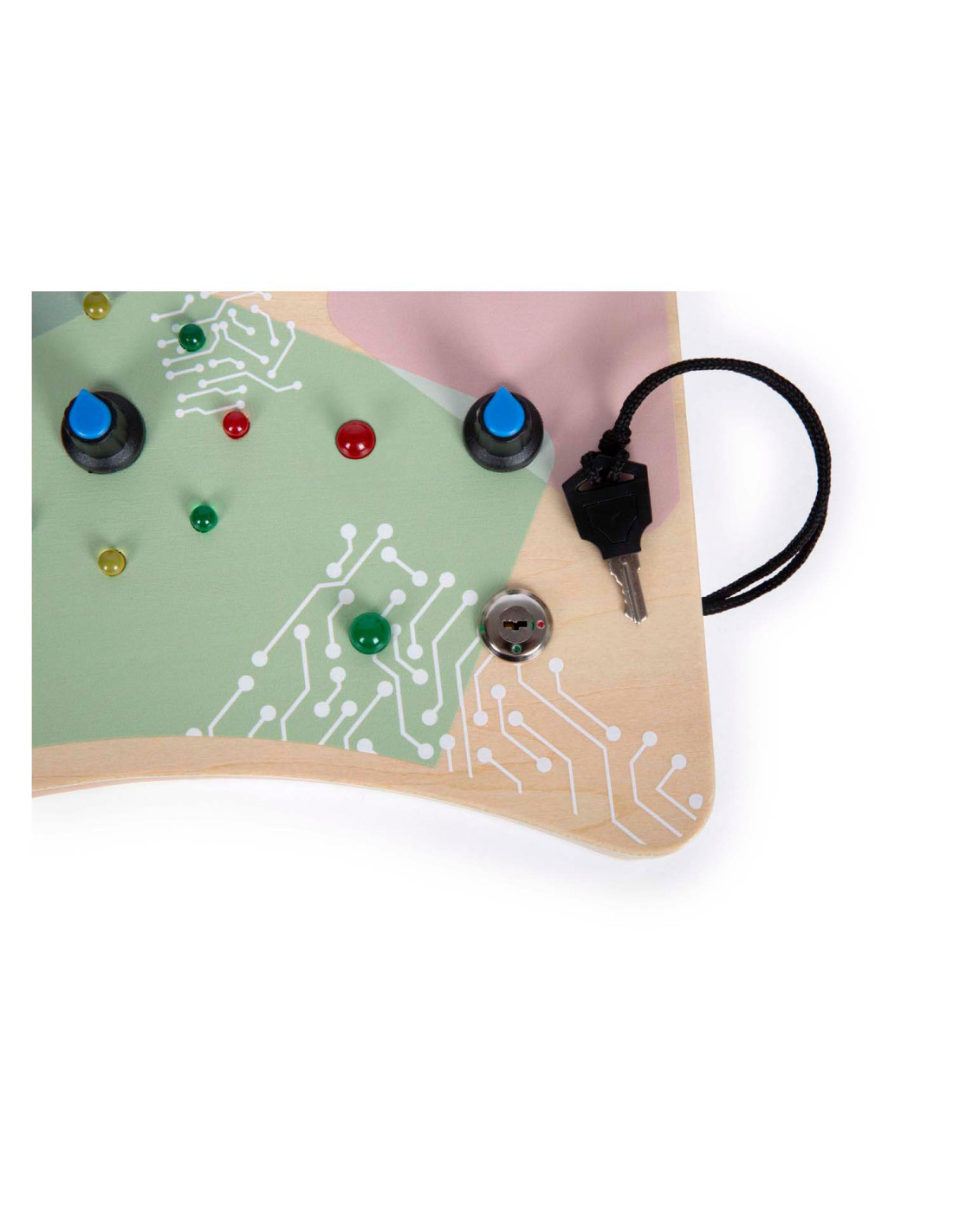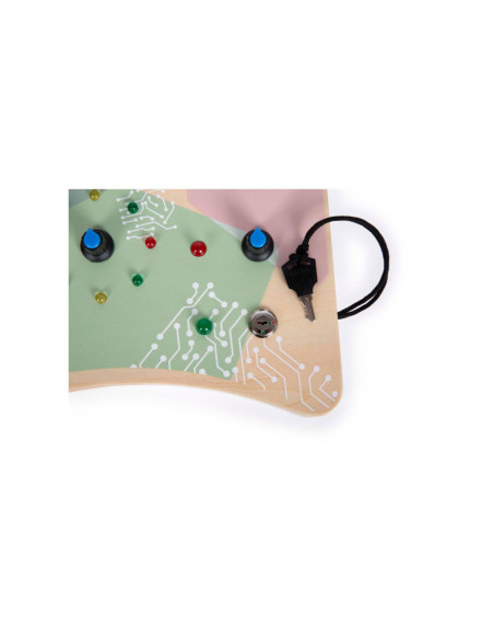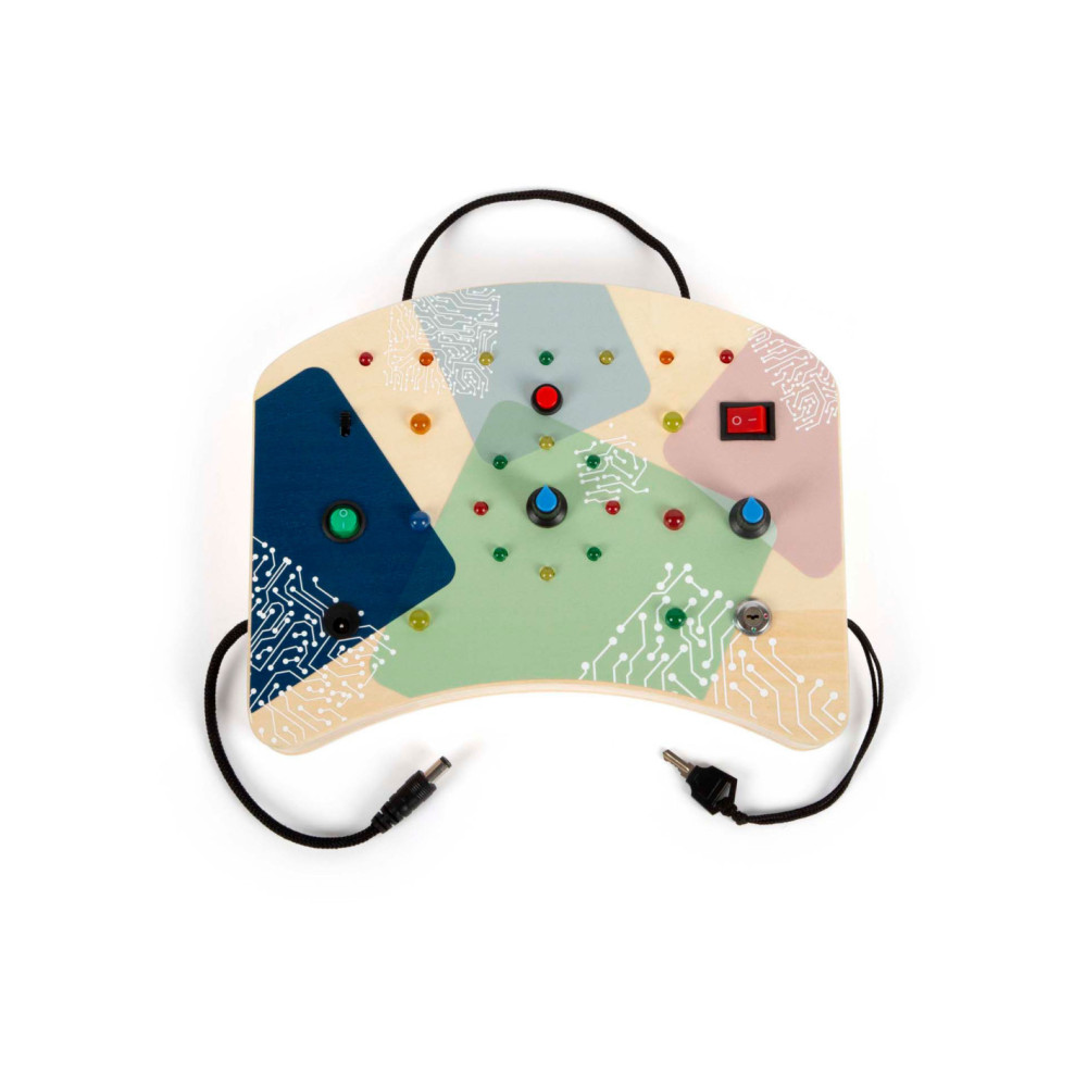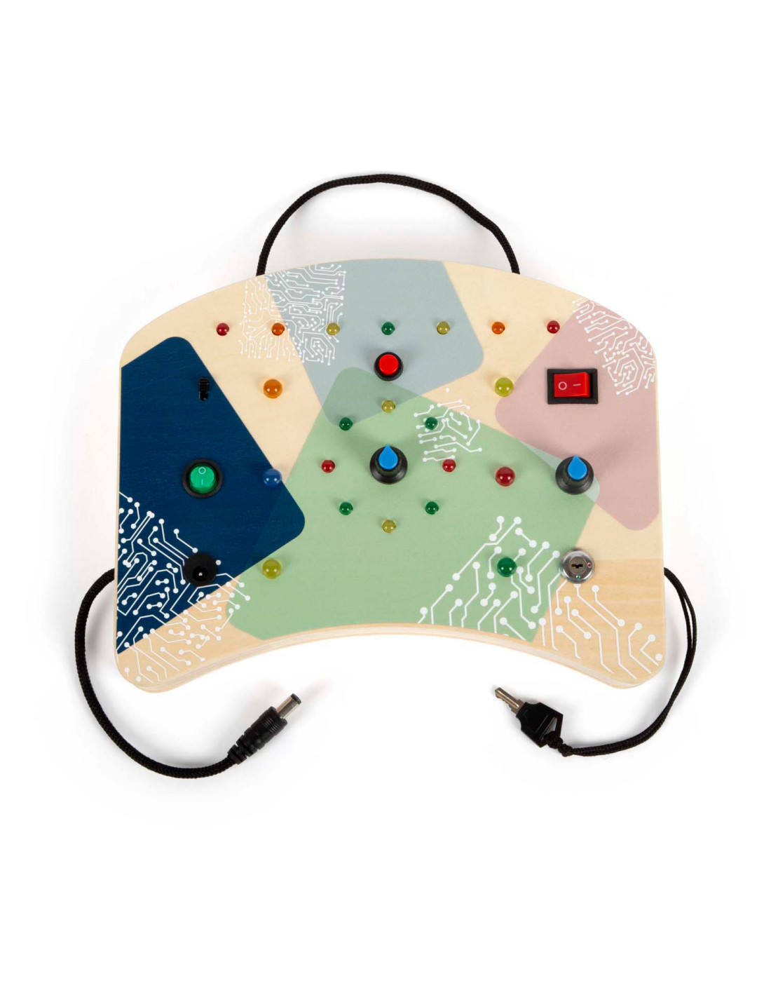 LED activiteitenboard met knoppen, schakelaars en lichtjes. Geschikt voor kinderen vanaf 24 maanden. Het formaat van het LED board is 22,5 x 15,5 x 5 cm Werkt op 3 AAA batterijen (niet inbegrepen).