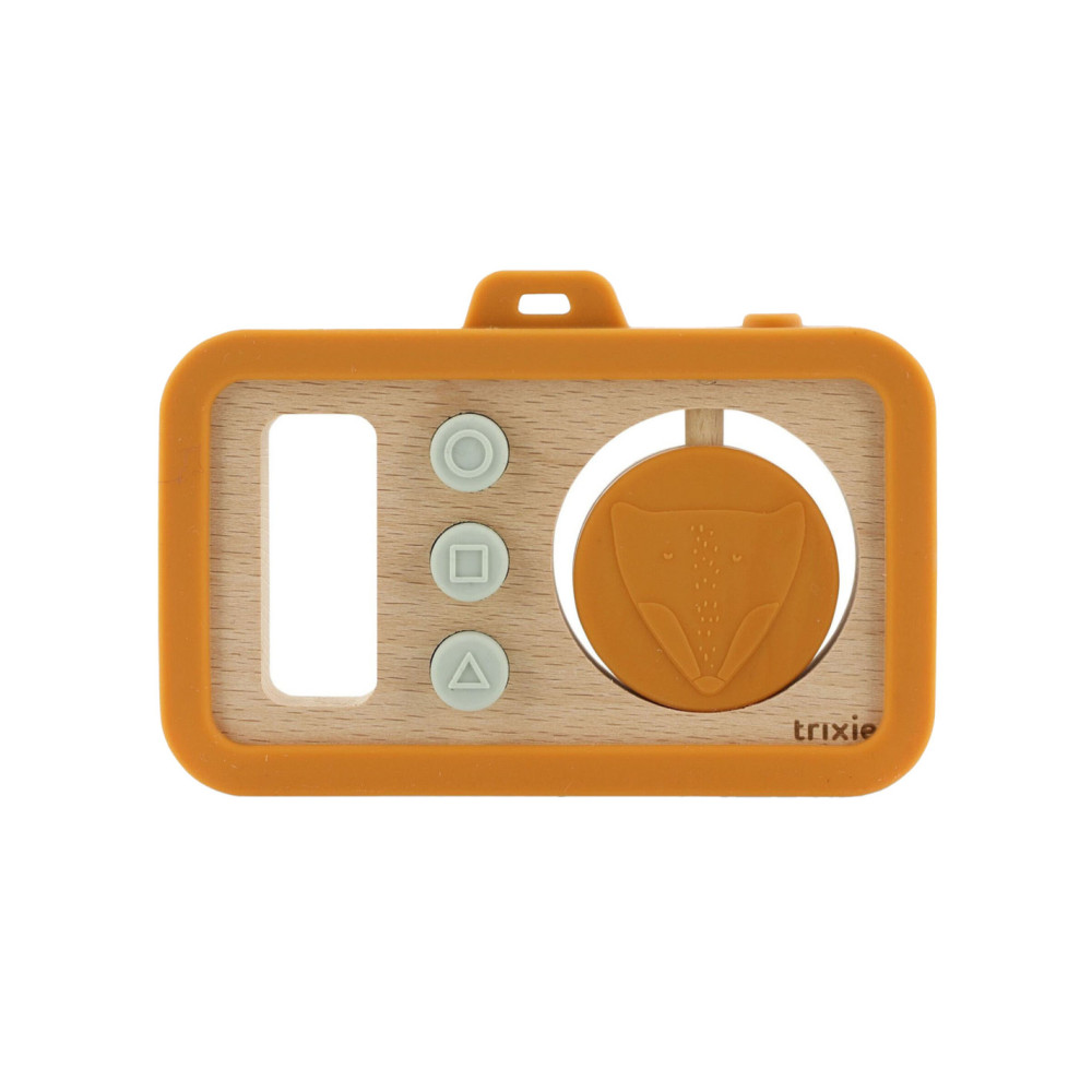 Deze camera is perfect voor grote glimlachen en gekke bekken. Hij is licht en met zijn afgeronde hoeken en een makkelijk vast te pakken handvat heeft deze camera een heleboel details, zoals zachte, siliconen knoppen en een draaiende dierenschijf. Je baby kan zijn of haar fijne motoriek en oog-handcoördinatie oefenen door kiekjes te schieten. FSC beukenhout - 100% siliconen