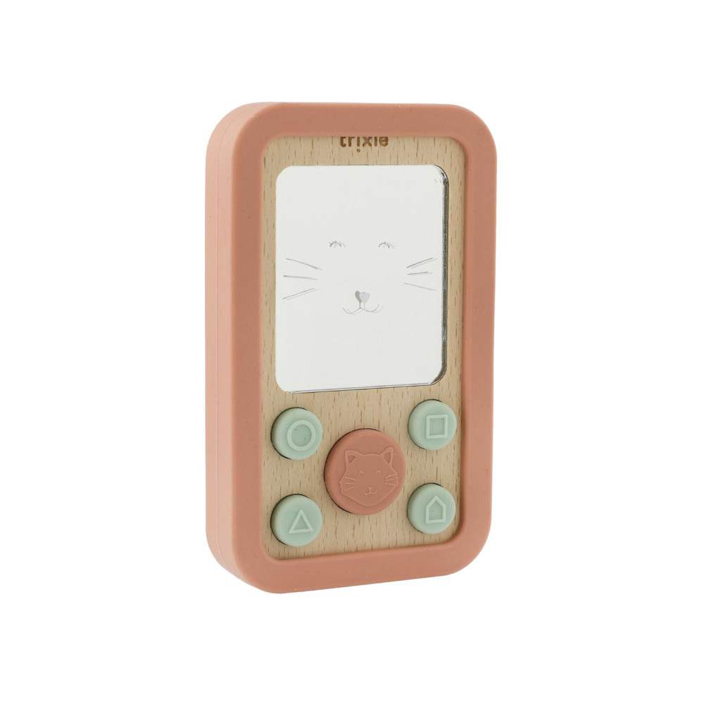 Kleintjes vinden het geweldig om grote mensen na te doen, dus “bellen” op hun eigen smartphone valt zeker in de smaak. Jouw baby's nieuwe telefoon is licht, felgekleurd en ideaal om op te kauwen dankzij de afgeronde hoekjes en silicone bumper. Hij is gemaakt van beukenhout met siliconen details en een berg knopjes om op te drukken. Ook heeft hij een spiegeltje om gekke bekken naar te trekken. Dankzij dit slimme ontwerp helpt hij je kleintje zijn of haar fijne motoriek en oog-handcoördinatie te ontwikkelen. FSC® beukenhout - 100% siliconen