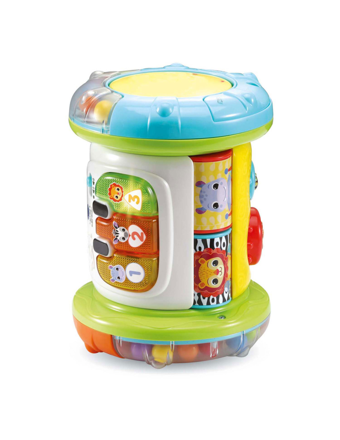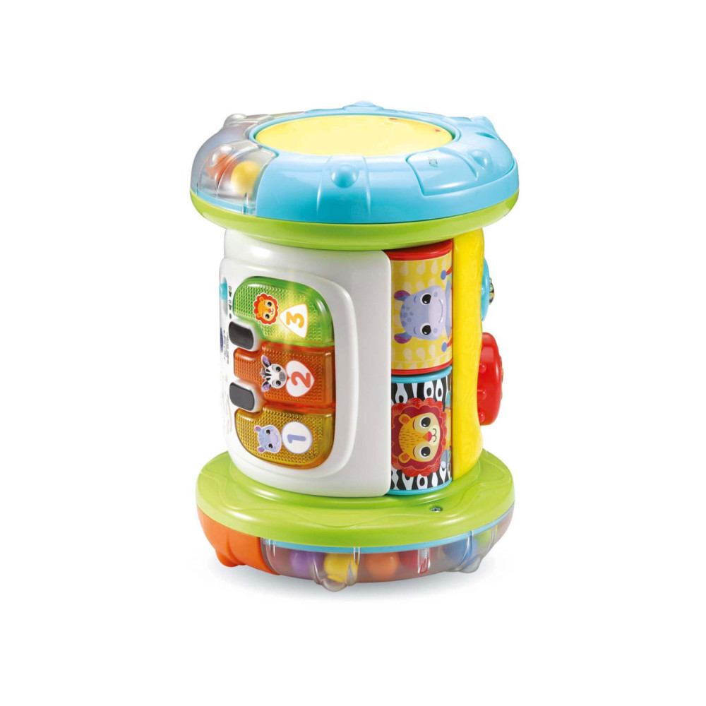 Rollen, kruipen, spelen en muziek maken! Tik op de trommel en druk op de knipperende pianotoetsen om kennis te maken met muziek, cijfers, dieren en dierenweetjes.