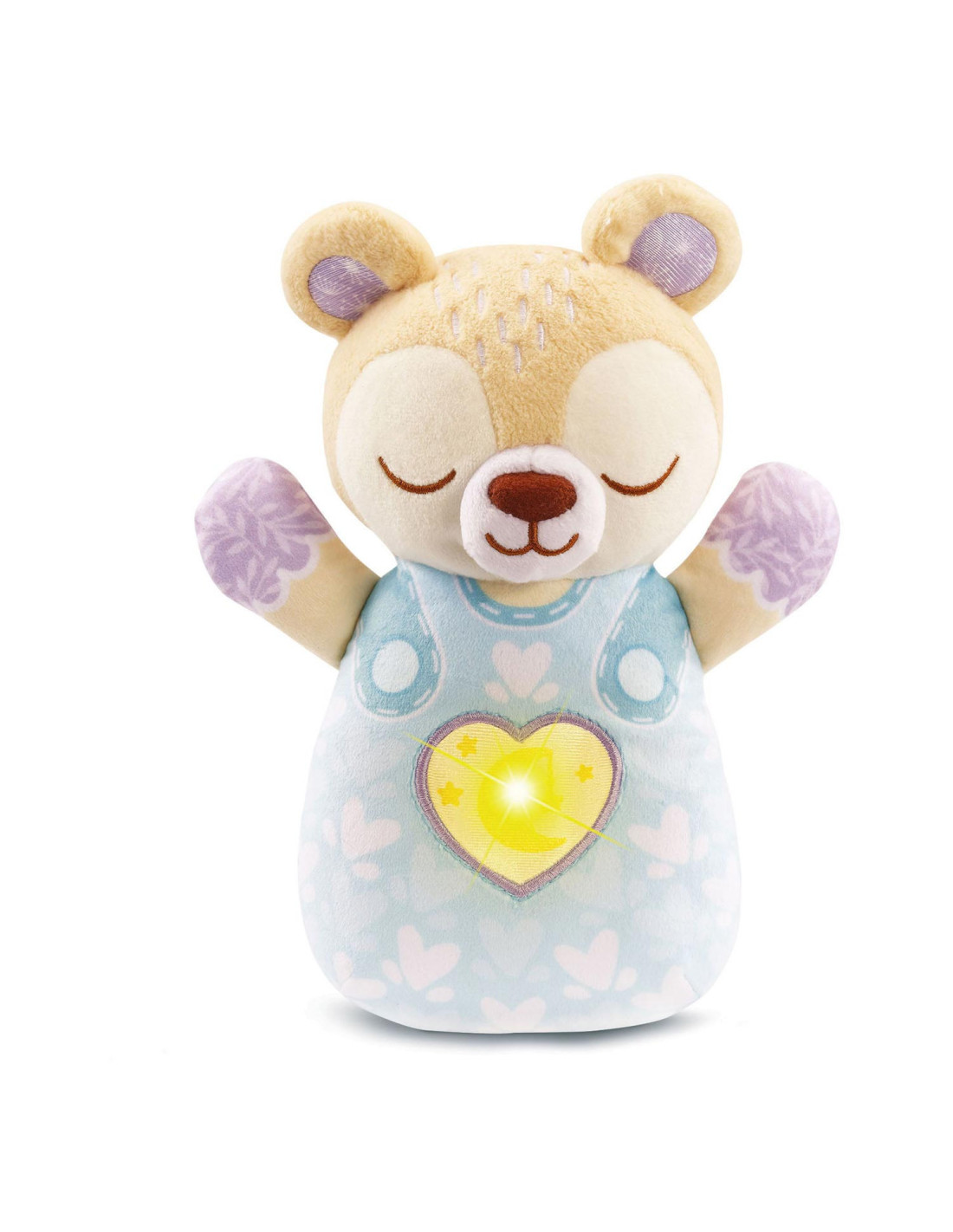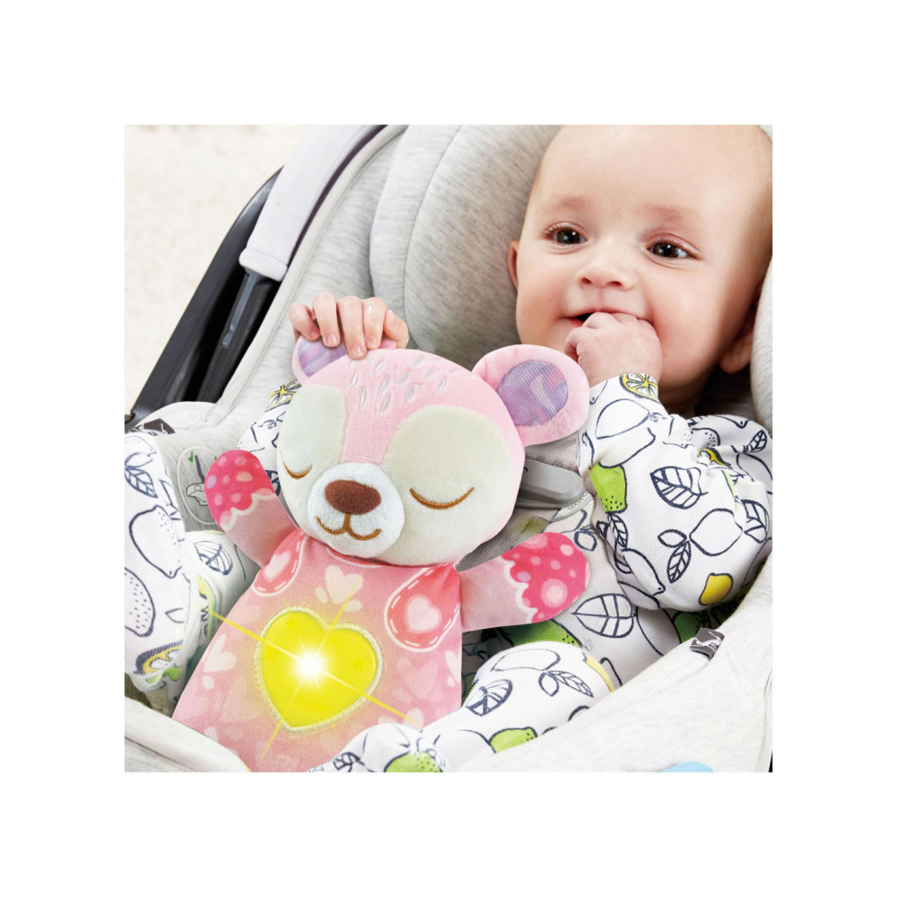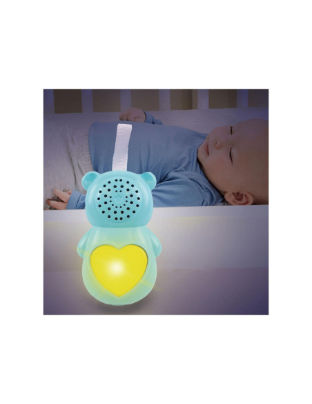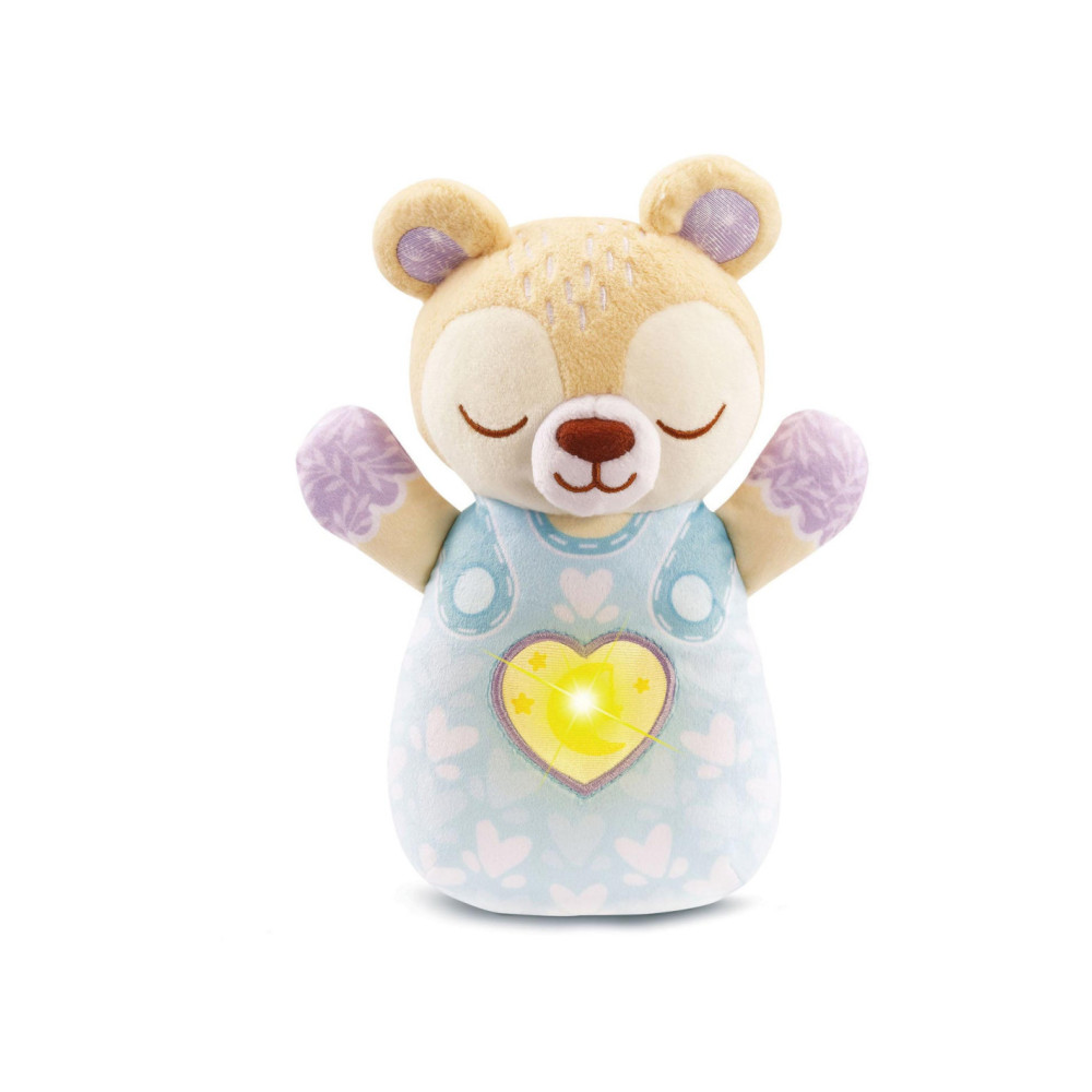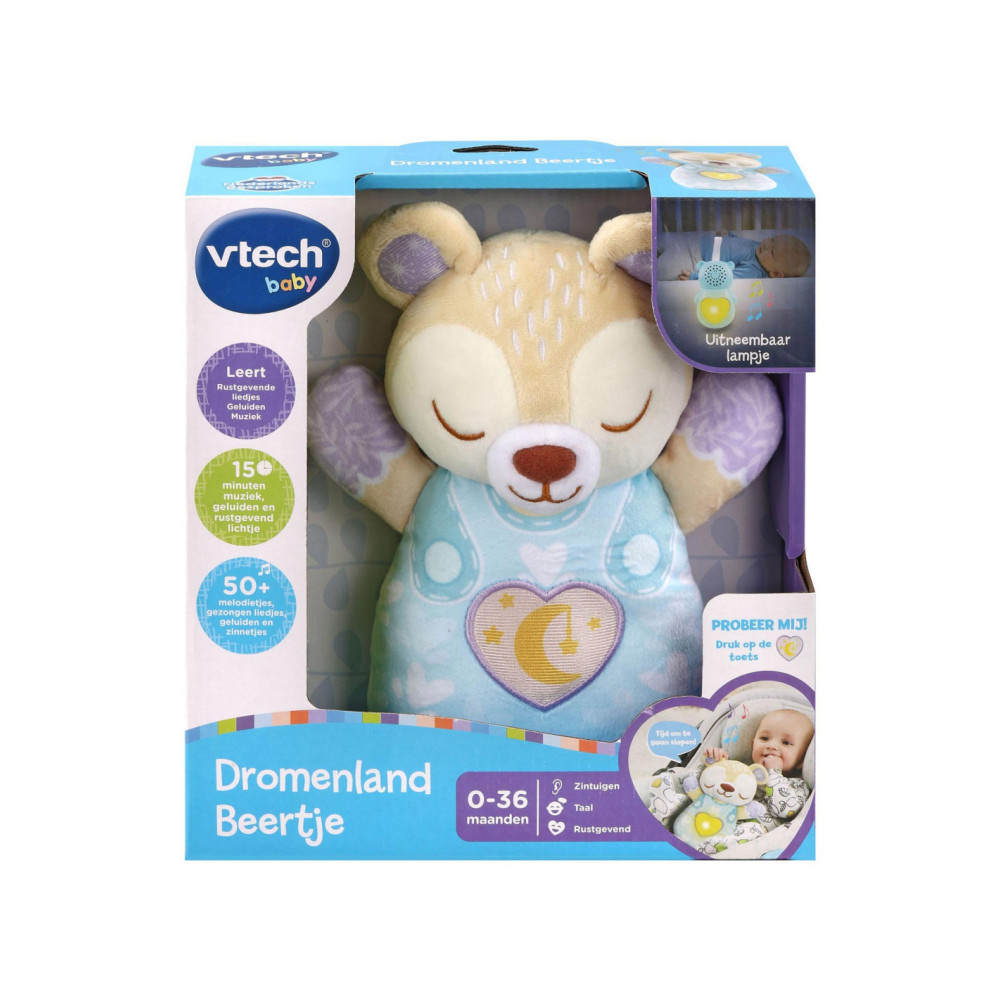 Een zachte knuffel en lieve woordjes voor het slapengaan. Met het Dromenland Beertje komt elke baby heerlijk tot rust. Druk op de harttoets om lieve zinnetjes, rustgevende melodietjes, gezongen liedjes en natuurgeluiden te horen. Het uitneembare nachtlampje met rustgevende muziek kan ook los gebruikt worden. Ik neem je graag mee naar dromenland! Slaap zacht.