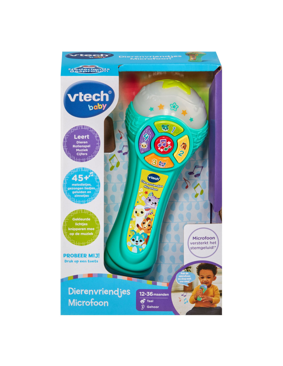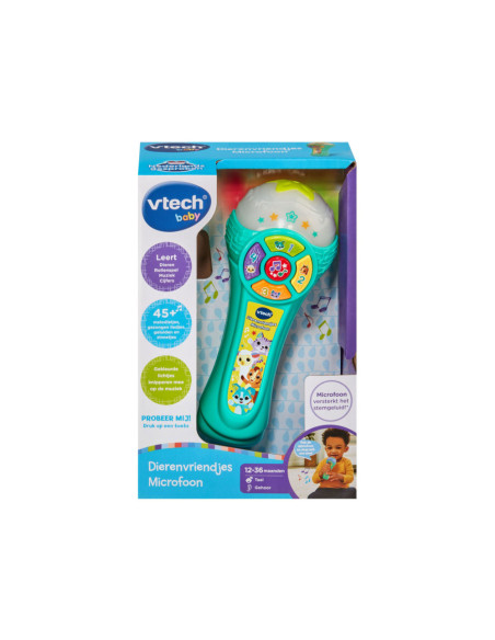 Pak de microfoon en zing met de dieren! Spreek en zing in de microfoon om je stem te versterken en kijk naar de mooie lichteffecten. Zinge mee met 15 melodietjes en 2 gezongen liedjes terwijl je kennismaakt met verschillende dieren en hun geluiden.