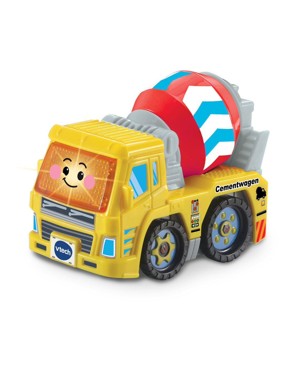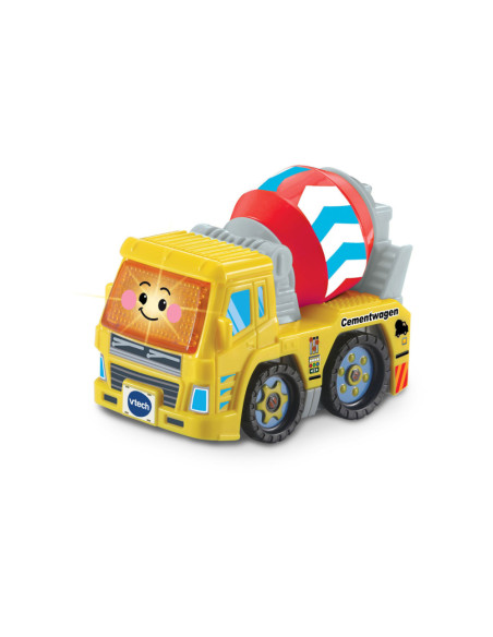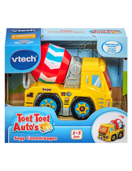 Verzamel alle voertuigen uit de Toet Toet Auto's collectie! Druk op de knipperende gezicht-toets om geluidseffecten, vrolijke zinnetjes en gezongen liedjes te horen. Draai de cementmolen om vrolijke zinnetjes en grappige geluiden te horen. Kom en ga samen met Sepp Cementwagen cement mixen en beton storten in Toet Toet Stad!