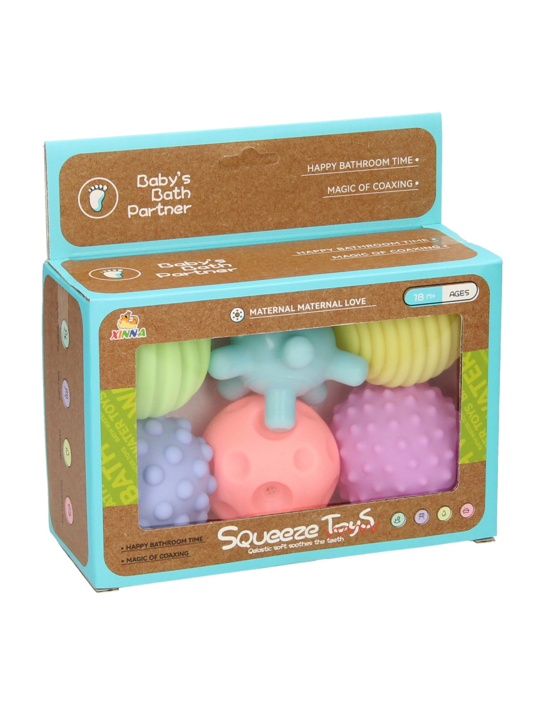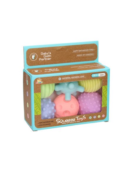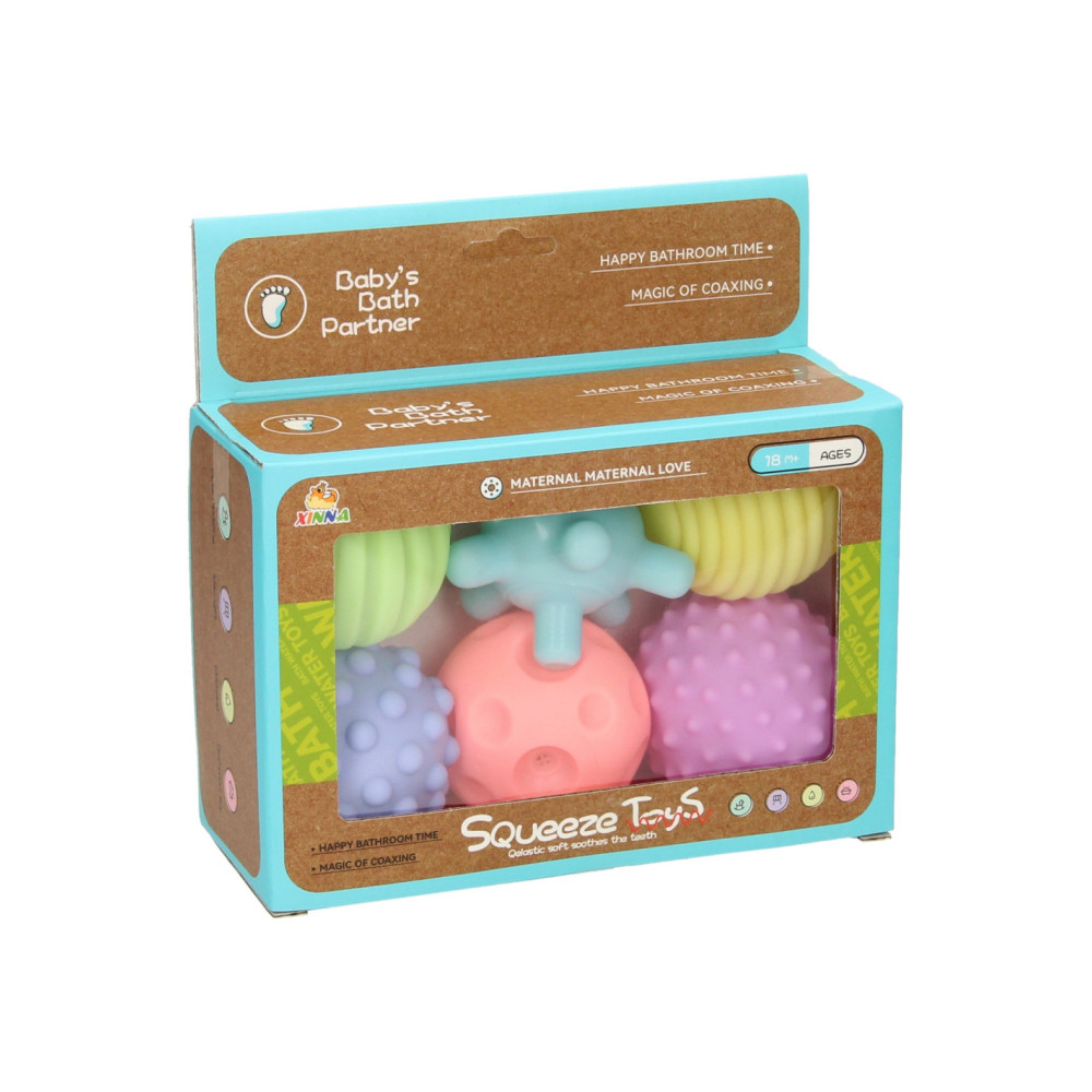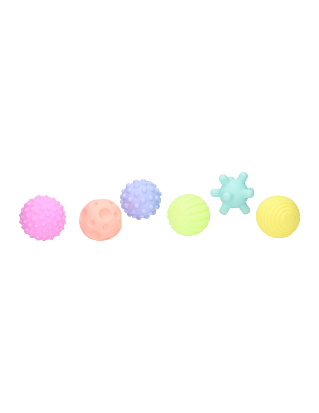 Set van 6 zintuigballen voor dreumesen en peuters vanaf 18 maanden oud. De ballen zijn gemaakt van zacht kunststof en hebben verschillende inkepingen en vormen die de tastzin stimuleren. De ballen zijn ca. 5,5 à 6 centimeter groot. De zintuigballen zijn makkelijk wasbaar en ook geschikt voor in bad.