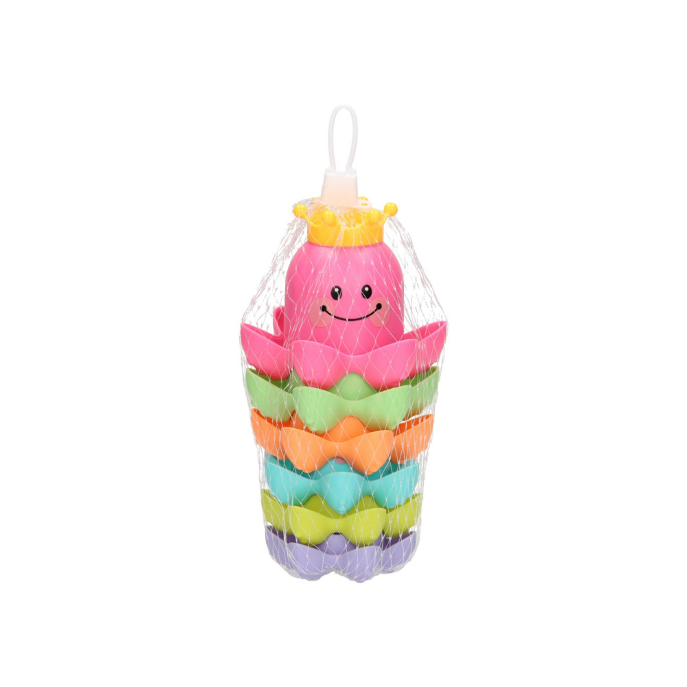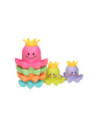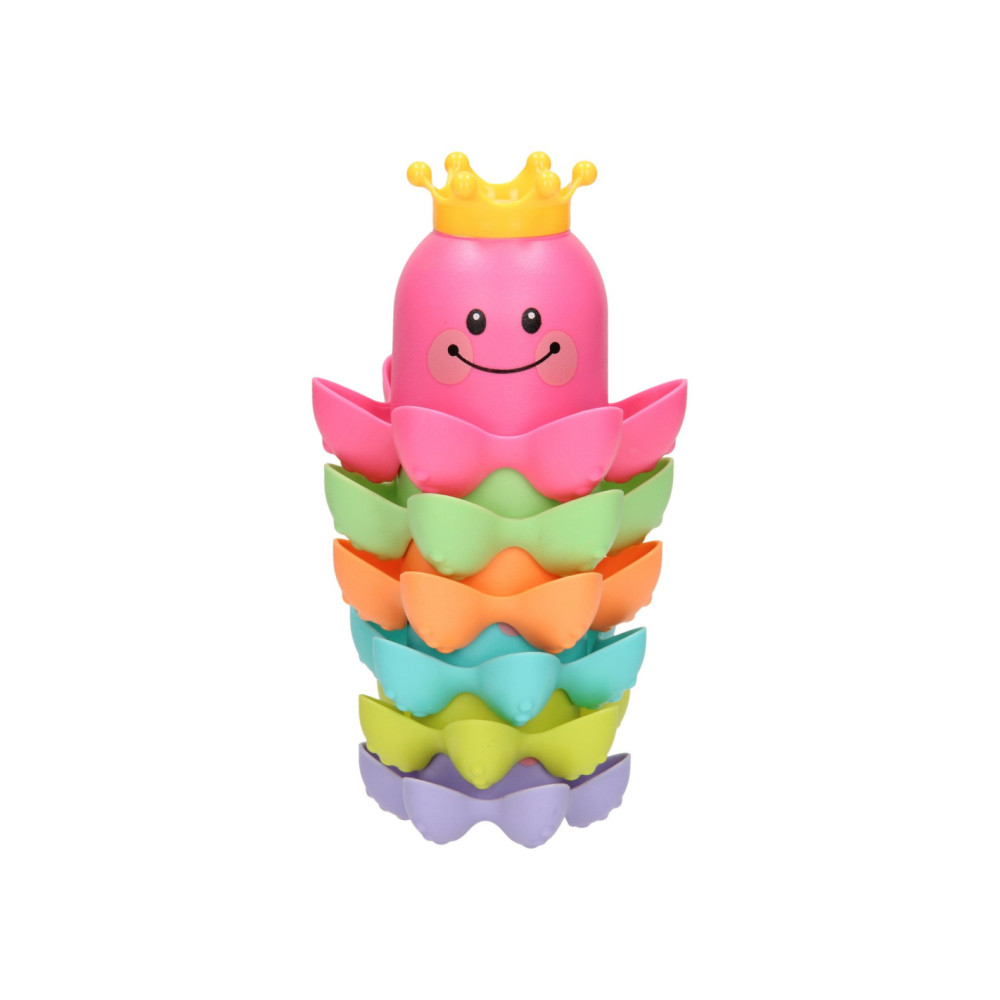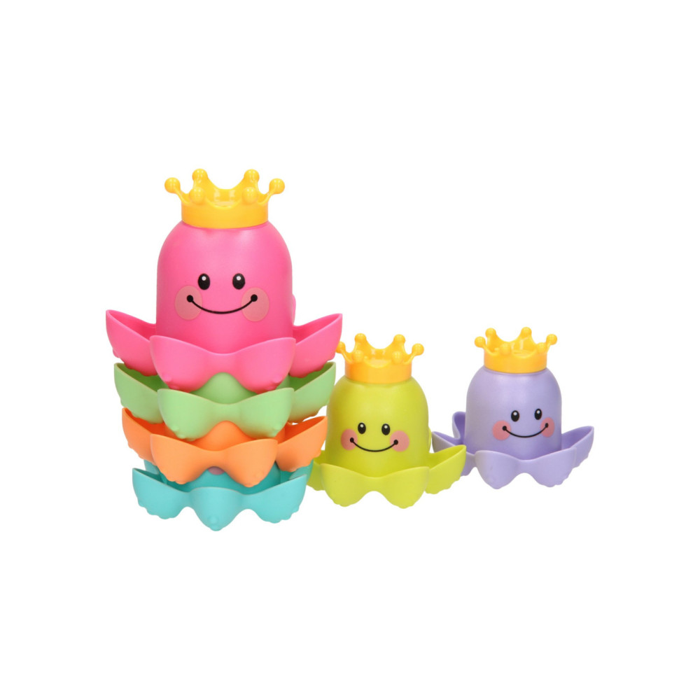 Met dit vrolijke badspeelgoed kun je de kleine wel even vermaken! De kunststof stapelbekers hebben de vorm van een octopus zijn bedrukt met een vrolijk gezichtje. Stapel de gekleurde bekers op elkaar of vul de bekertjes met water. Dankzij de gaatjes in het kroontje kunnen de bekers ook als gieter gebruikt worden.