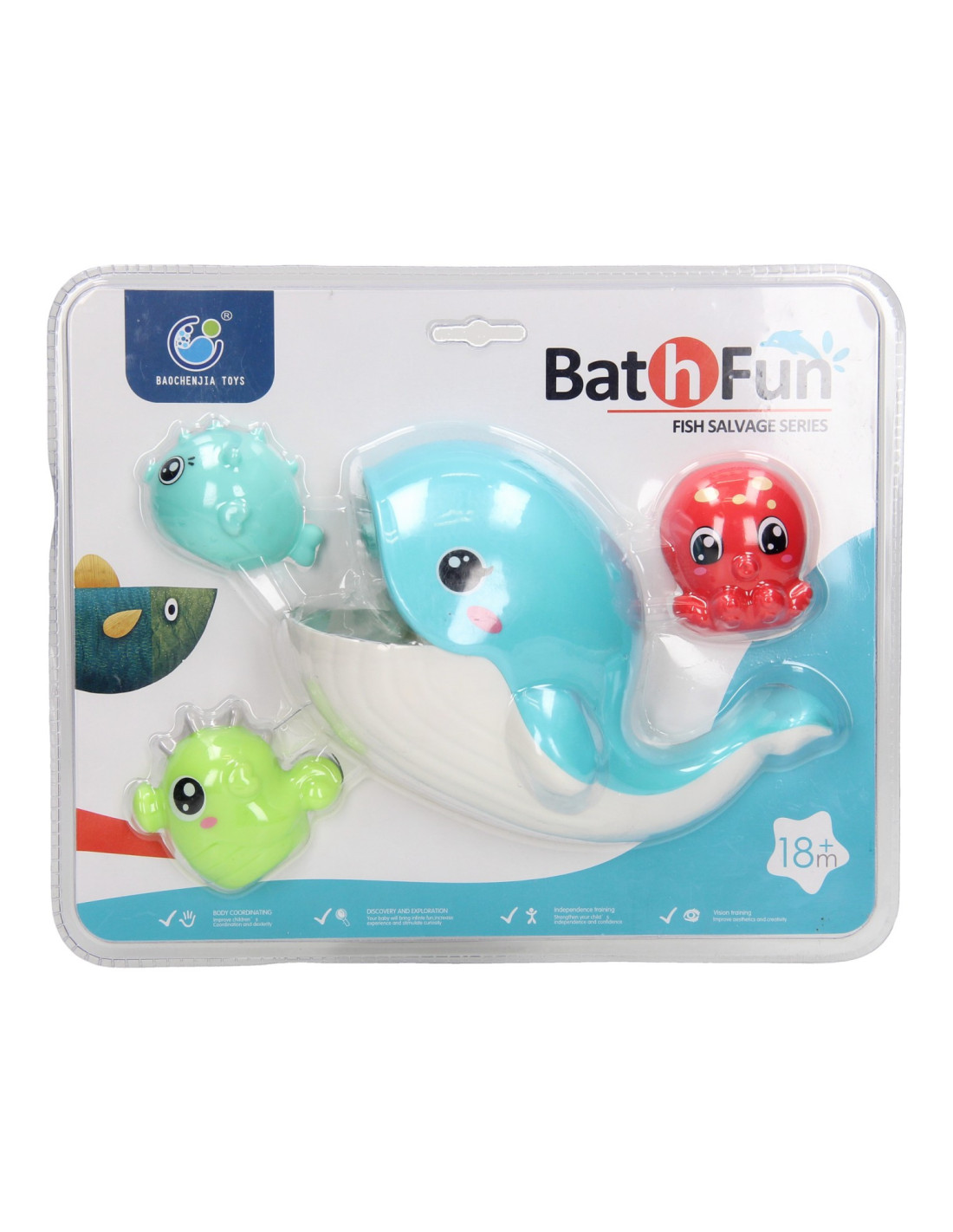 Vang de kleine visjes met de walvis happer! De set bestaat uit een kunststof walvis en 3 kleine visjes. Geschikt vanaf 18 maanden.