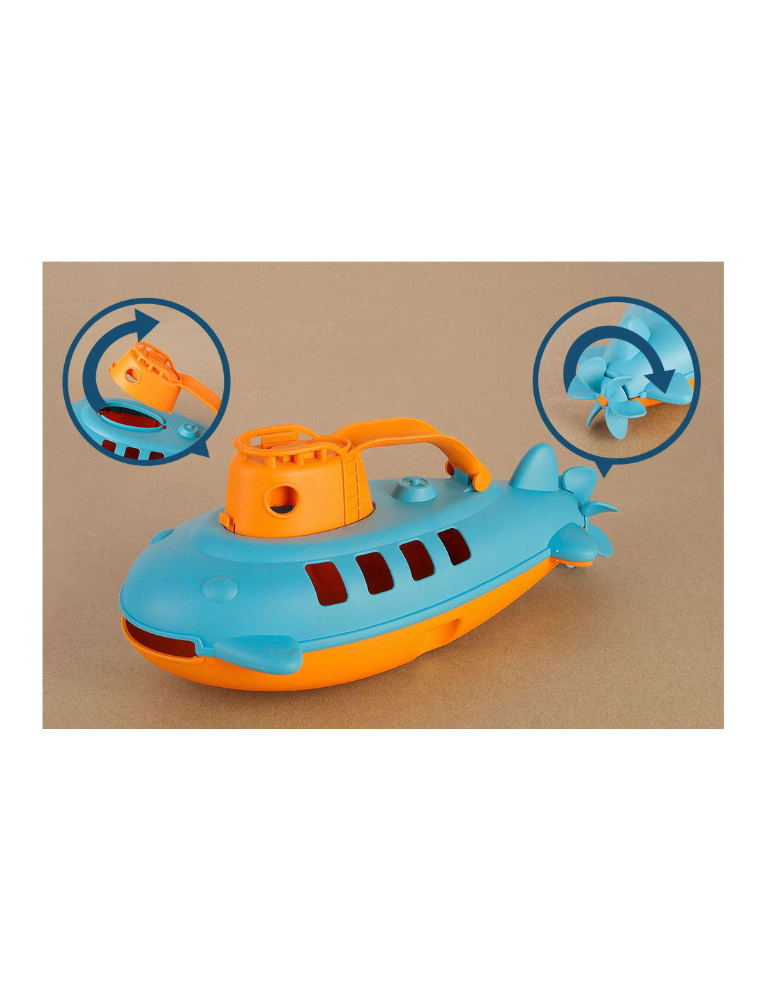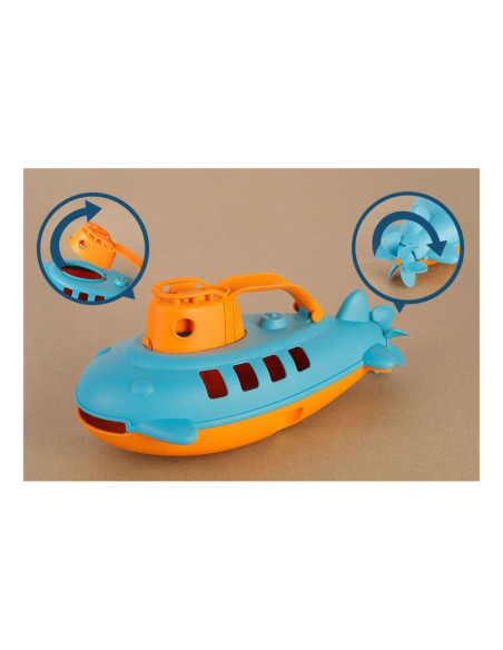 Onderzeeer gemaakt van organisch materiaal. Klepje bovenop kan open, waardoor je iets in de onderzeeer kan plaatsen. De propeller kan echt draaien.