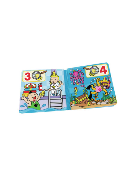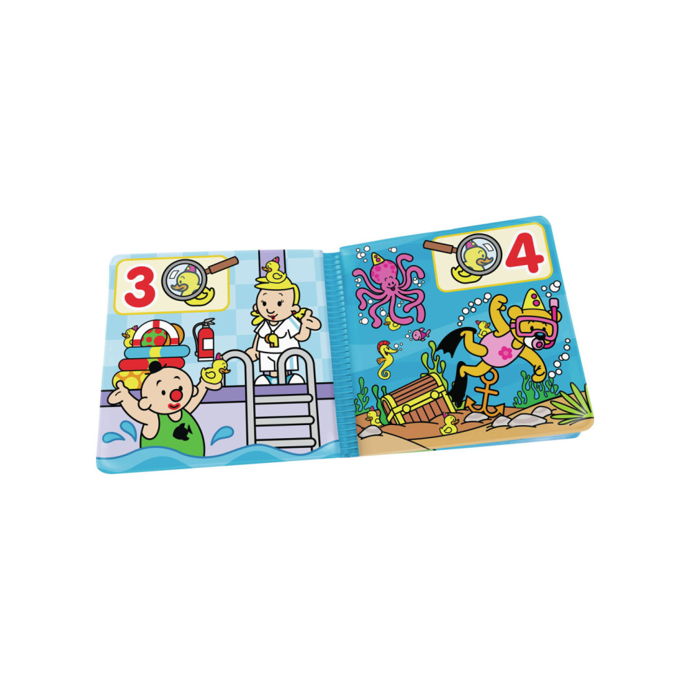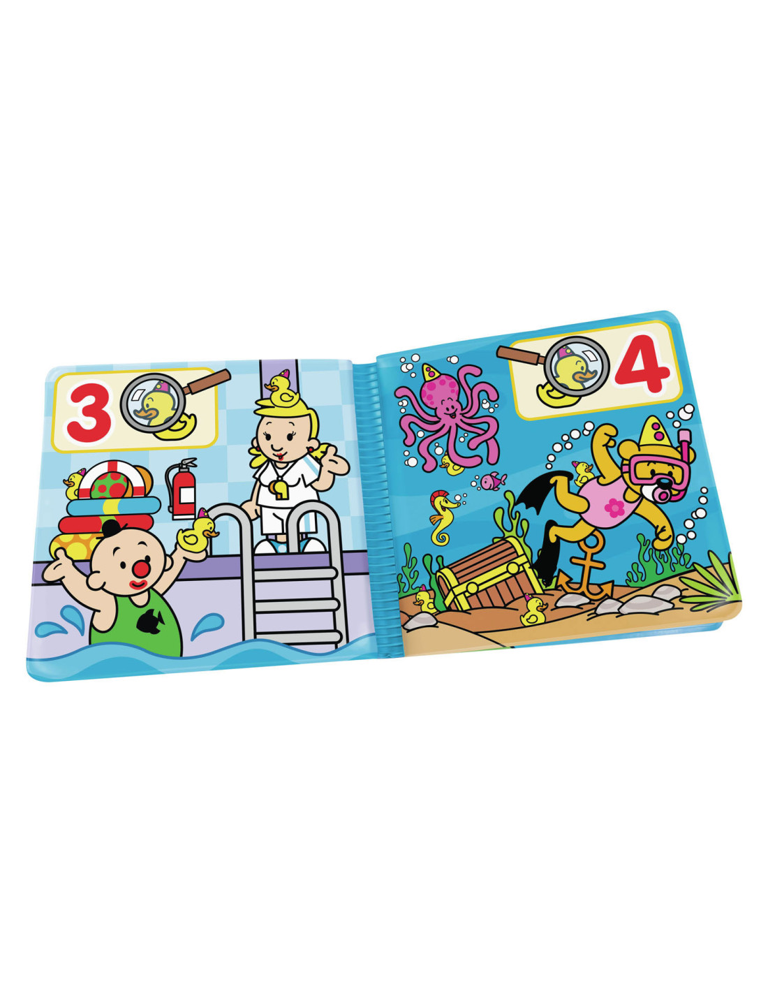 Een leuk en educatief zoekboek voor in bad van Bumba en zijn vriendinnetje Bumbina. Zoek en tel de badeendjes in dit vrolijk geïllustreerde boekje! Afmetingen: 20 x 16 x 4 centimeter.