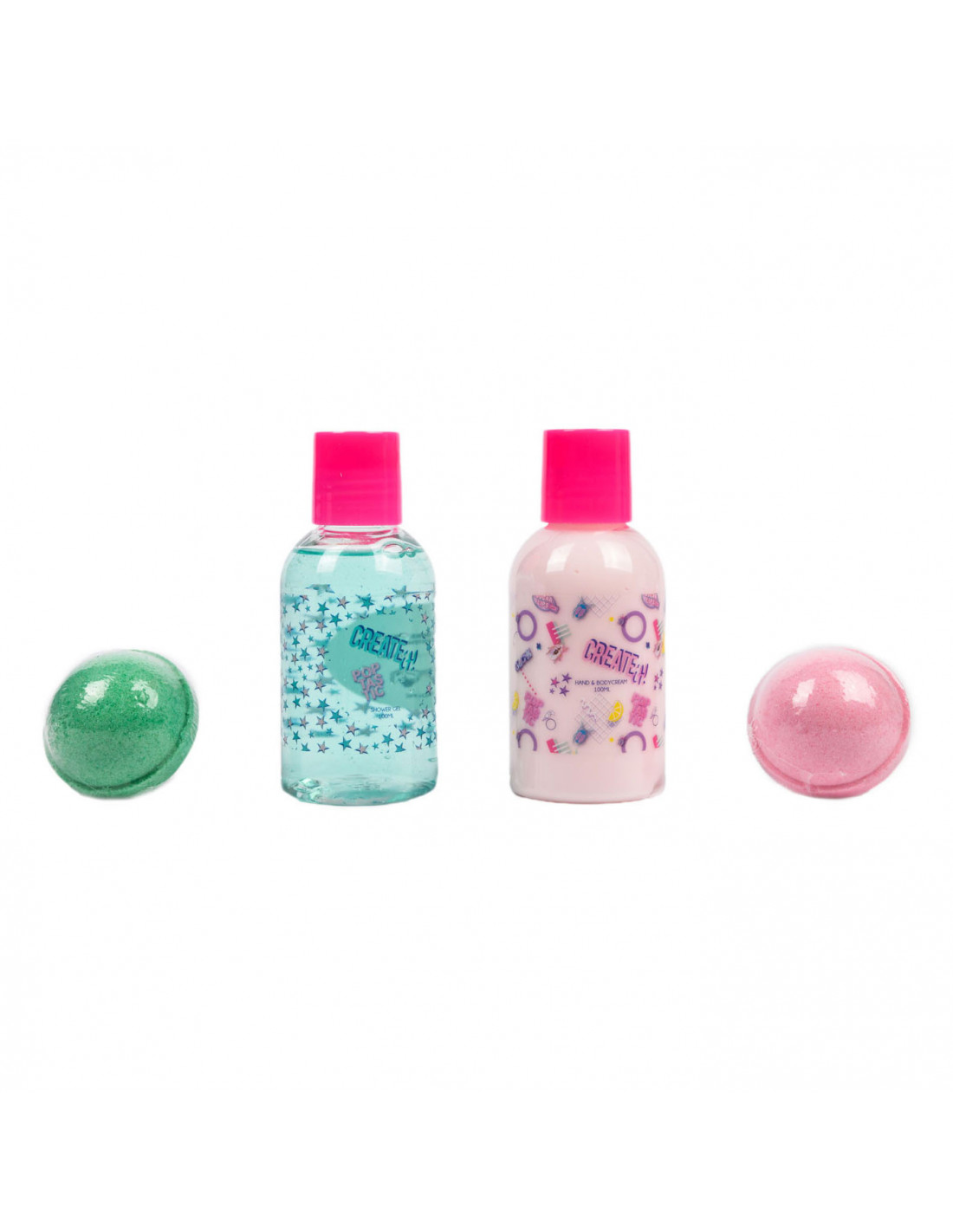 De Create It! Bad set is ideaal om cadeau te geven. De set bevat 2 bruisballen een flesje shower gel (100ml) en een flesje hand en bod crème.