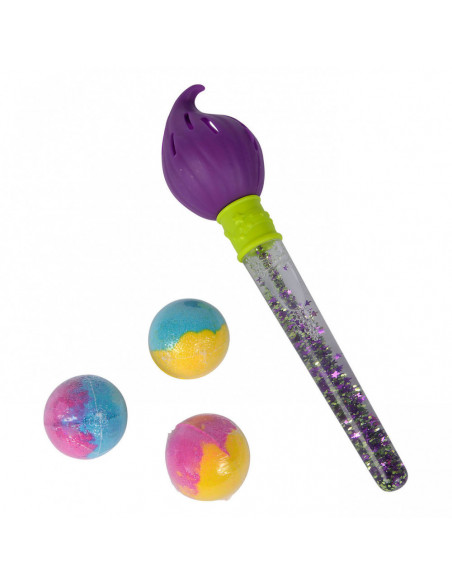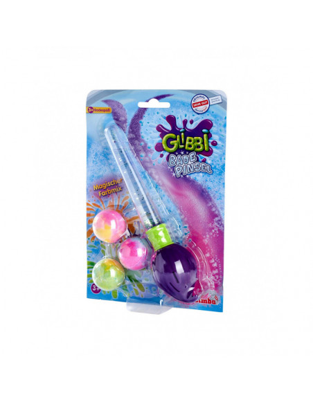 Schilder in bad met de magische Glibbi badkwast! Doe een kleurrijke bad bomb in de kwast en beweeg hem door het water en er ontstaan prachtige bruislijnen in het water. Deze Glibbi badkwast is goed voor minutenlang kleurplezier en een vrolijk gekleurd bad. Er zitten drie multicolor bruisballen bij de badkwast.