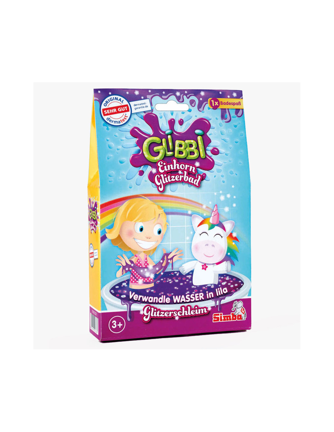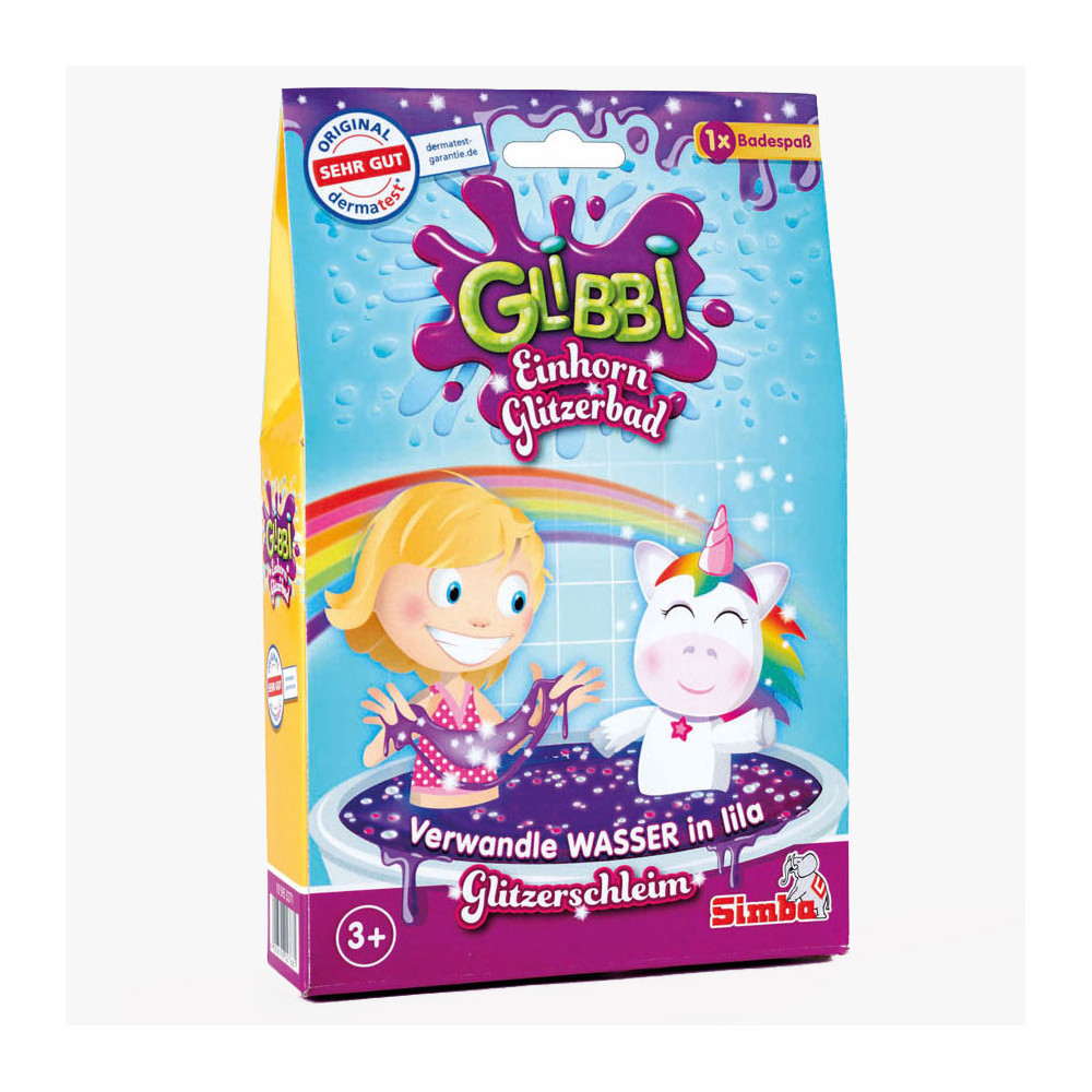 Paars glitterslijm voor alle fans van eenhoorns! Kinderen kunnen heerlijk baden in paars slijm met prachtige eenhoornglitters met het Glibbi Eenhoornglitterbad. Het Glibbi-poeder verandert het badwater in geweldig paars glitterslijm en zorgt voor veel plezier in bad. Na het badplezier verdun je het slijm met water om het weg te speoelen. Glibbi eenhoorn glitterbad is dermatologisch getest en geschikt voor kinderen vanaf 3 jaar.