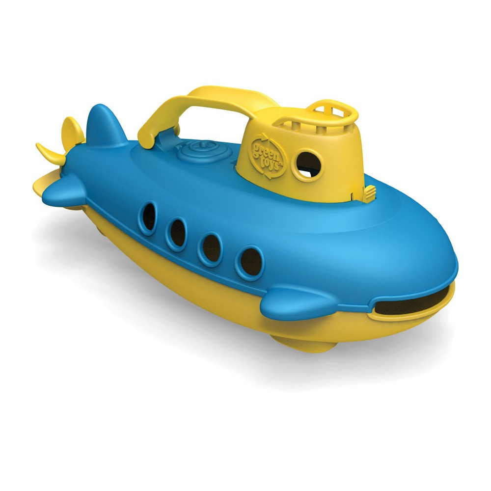 Neem een duik onder water met deze onderzeeër van Green Toys. Plaats de duikers in de onderzeeër, draai aan de motor aan de achterzijde en duik het avontuur tegemoet! De blauw met gele onderzeeër is gemaakt van stevig kunststof vervaardigd uit 100% gerecycled materiaal.