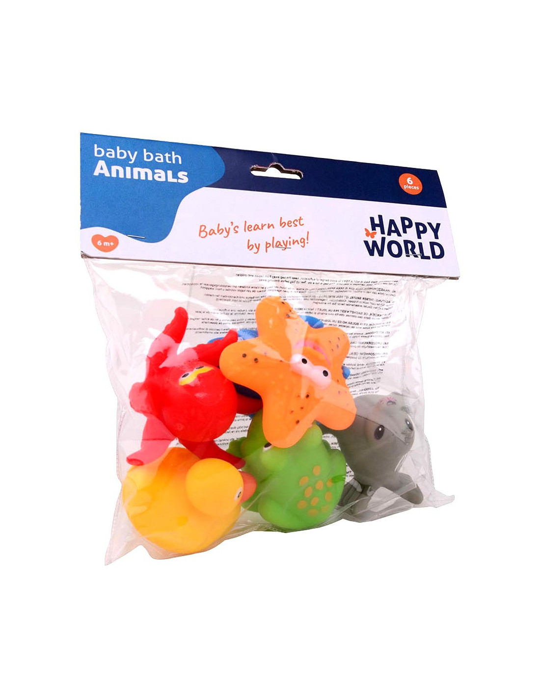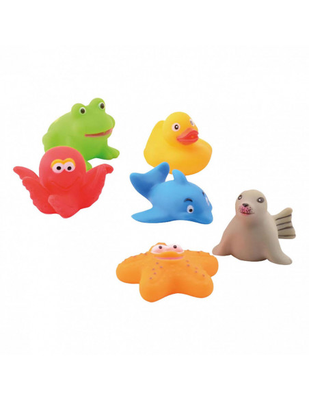 6 badspeeltjes: een kikker, octopus, eend, dolfijn, zeehond en een zeester. Geschikt voor kinderen vanaf 6 maanden tot 4 jaar.