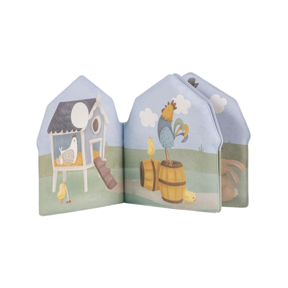 Maak het badderen nog veel leuker met dit badboekje. Maak kennis met de dieren uit het FARM thema van Little Dutch die allemaal samen op de boerderij wonen! Wie zie je door het kijkgat en wie spelen er in de modder? Op de tweede pagina kan je kindje een piepend geluid ontdekken. Wordt geleverd in full-colour windowbox. Geschikt voor kinderen vanaf 6 maanden.