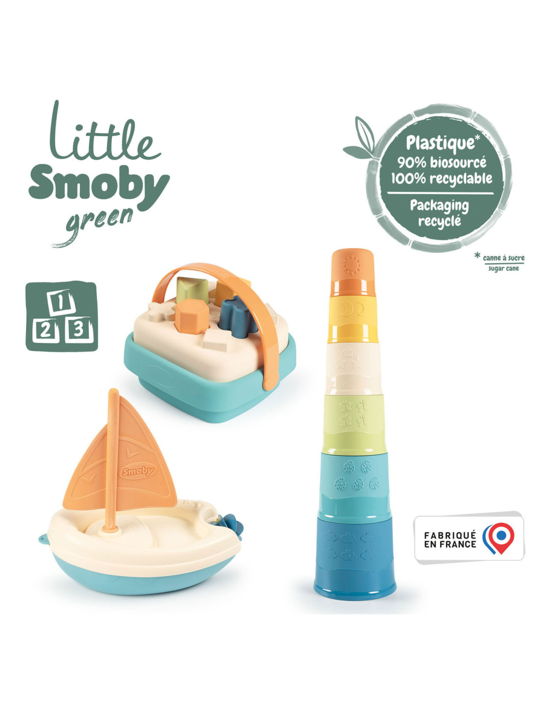 Badderset bestaande uit een magische toren, een vormenstoof en een boot. Gemaakt van 90% plantaardig materiaal (suikerriet). 100% recyclebaar en verpakt in een doos van gerecycled karton. Geschikt voor kinderen vanaf 12 jaar oud.