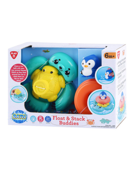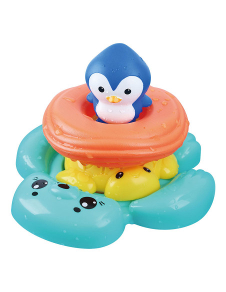 Deze schattige badspeelgoedset bevat een spetterende pinguïn, een vriendelijke zeehond, een schattige schildpad en een drijvende schijf. Het speelgoed drijft allemaal in het water en sommige stapelen zich zelfs op elkaar, waardoor badderen leuk en fantasierijk wordt voor de kleintjes.