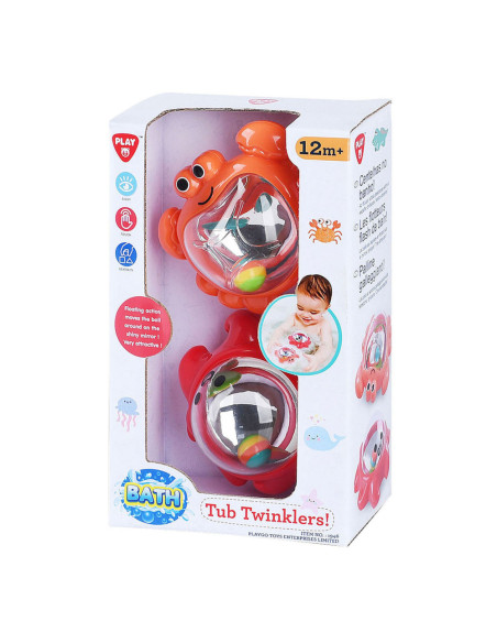 Drijvende krab en octopus voor in bad of in het zwembad. In de doorzichtige koepel zitten balletjes die bewegen. Geschikt voor kinderen vanaf 12 maanden.