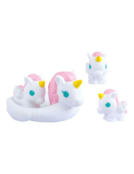 Geniet van het 'magische' moment tijdens het baden en het kijken naar de eenhoorns die ronddobberen tijdens het badderen! 4-delige set, 1 grote eenhoorn en 3 kleine. De kleintjes kunnen op de rug van de grote zitten. Perfect voor badplezier! Geschikt voor kinderen vanaf 6 maanden.
