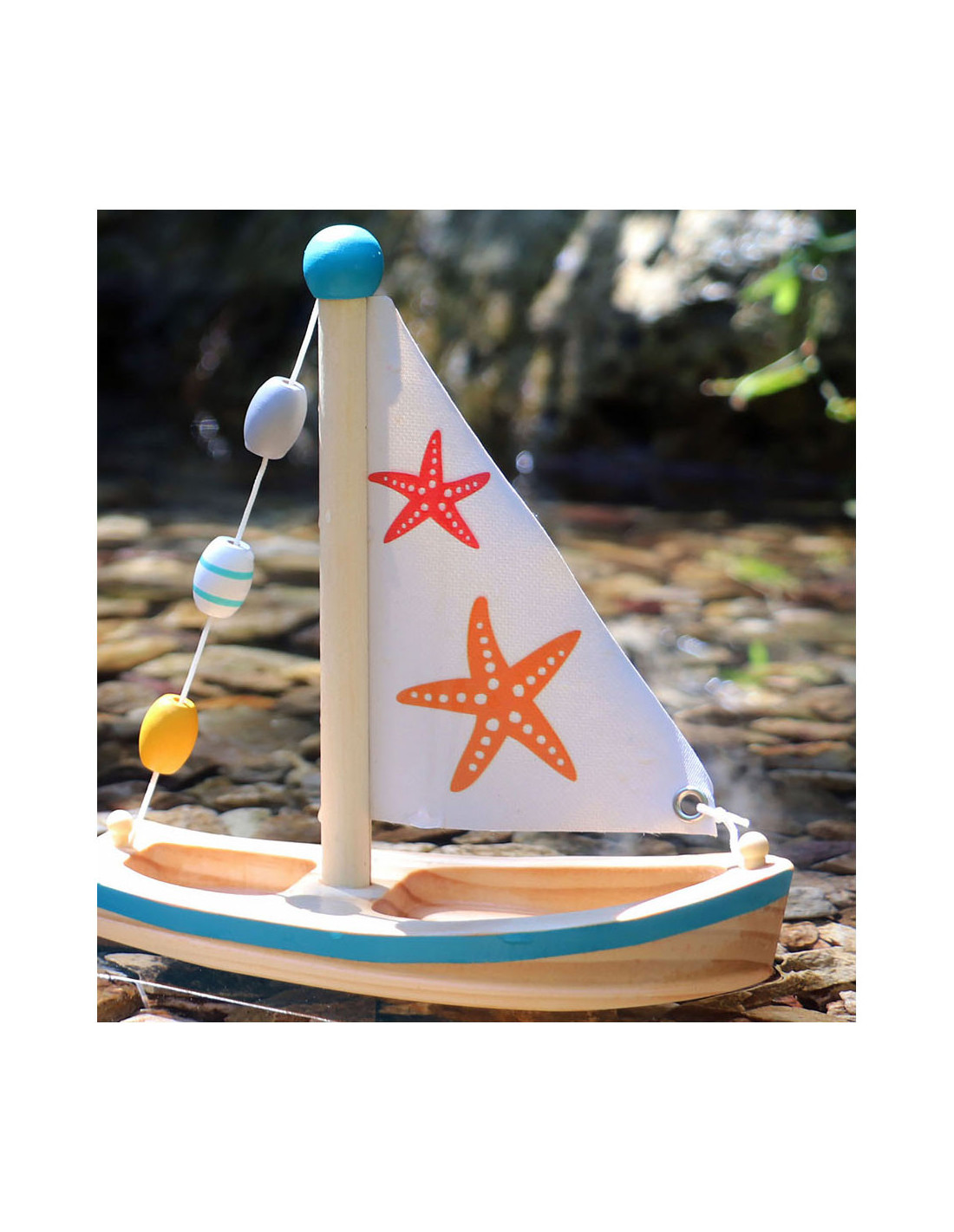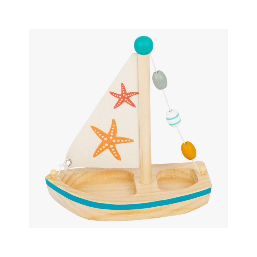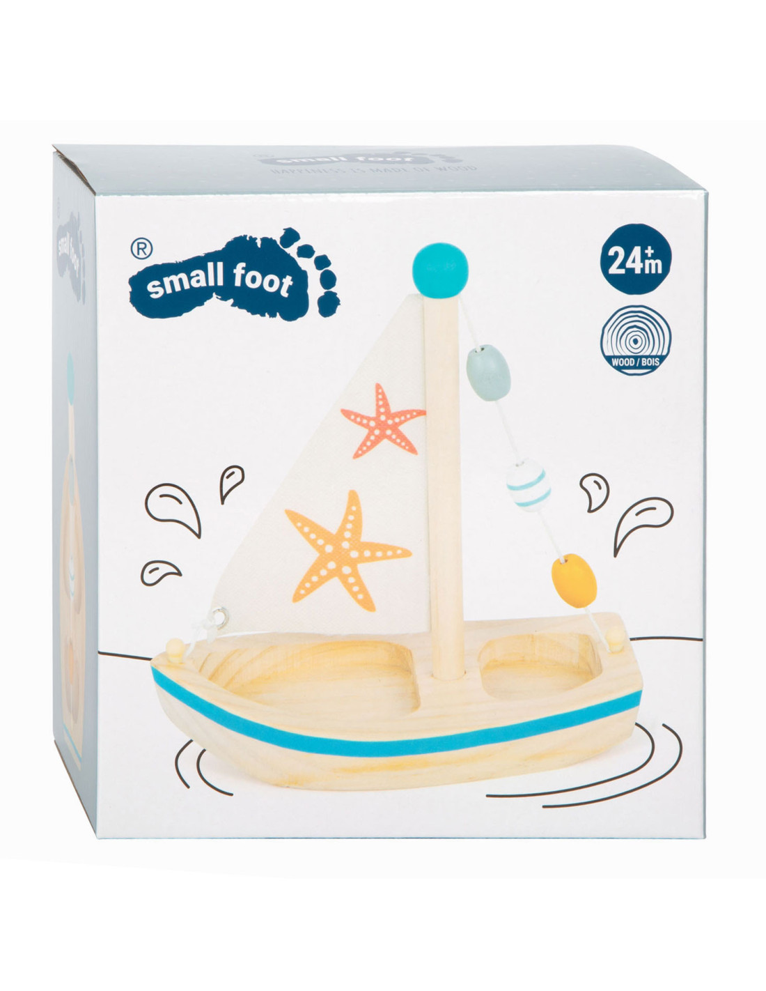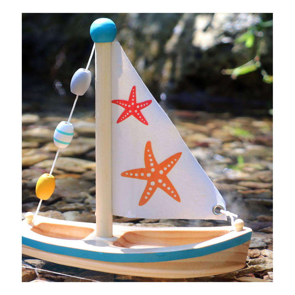 Alle zeekapiteins opgelet! Met deze houten zeilboot zetten kinderen koers naar een wereld vol waterpret. Als de jonge matrozen voor anker gaan en zeilen, staat niets een leuk rollenspel in de badkuip, het kinderbad of het zwembad nog in de weg! En voor nog meer speelplezier is er aan dek ruimte voor een bemanning van andere speelfiguren. Voor een langere levensduur van het product, haal je het uit het water en droog het grondig af na elk gebruik. Geschikt voor kinderen vanaf 24 maanden.