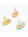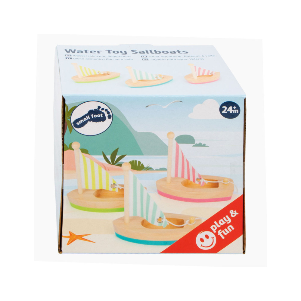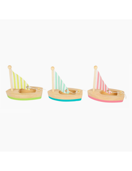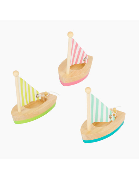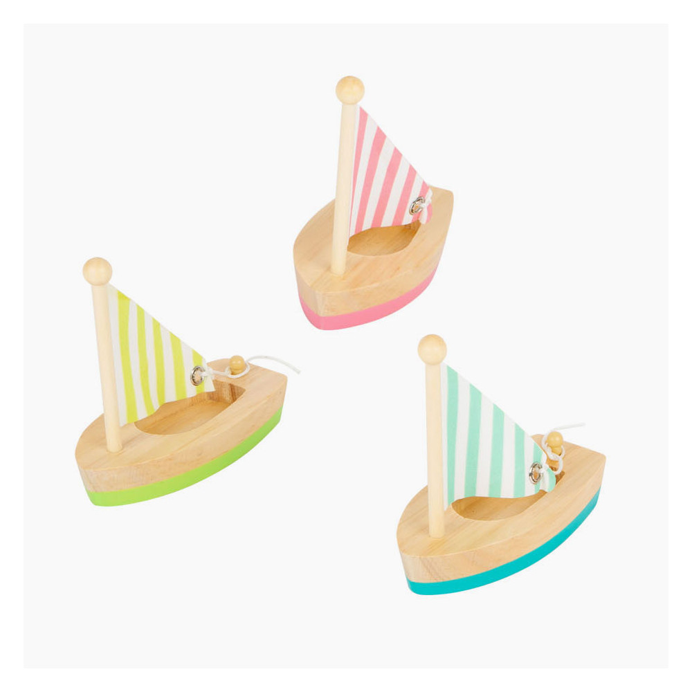 Alle zeilers opgelet! Deze drie houten zeilboten zullen elke enthousiaste zwemmer zeker bekoren terwijl ze in het rond spetteren - of ze nu in de badkuip, het kinderbad of het grote zwembad zijn. De zeilen kunnen desgewenst worden neergelaten en daarna weer worden vastgebonden. Voor een langere levensduur van het product, haal je het uit het water en droog het grondig af na elk gebruik.
