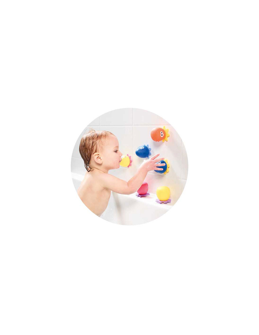 De baby's plakken aan de rand van het bad of op de tegels.